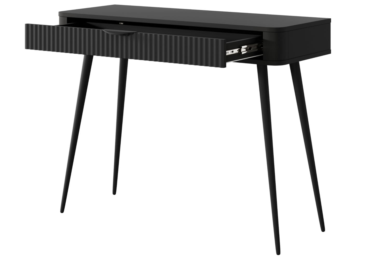 Czarna konsola / toaletka z szufladą frezowane fronty ADELANTE 100 cm