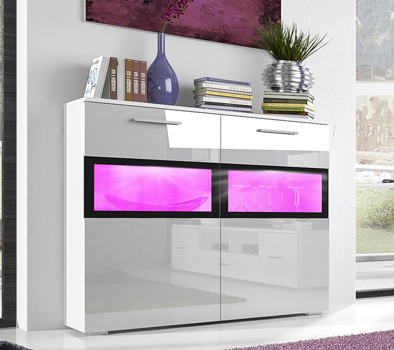 [ARCHIWUM] Komoda z przeszklonymi witrynami 92 cm biały połysk san remo SARAH (LED)