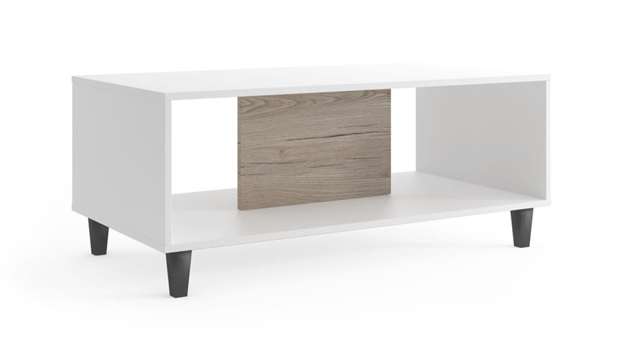 Stolik kawowy stworzy w pełni funkcjonalną powierzchnię w centrum Twojego salonu bądź pokoju. Przyda się zarówno przy spotkaniach towarzyskich, jak i spokojnych wieczorach przed telewizorem. Posiada półkę, która nada się na schowanie pilotów lub czytanych książek pod blatem.