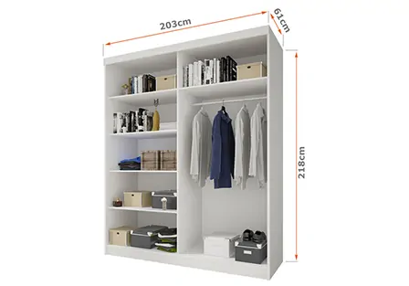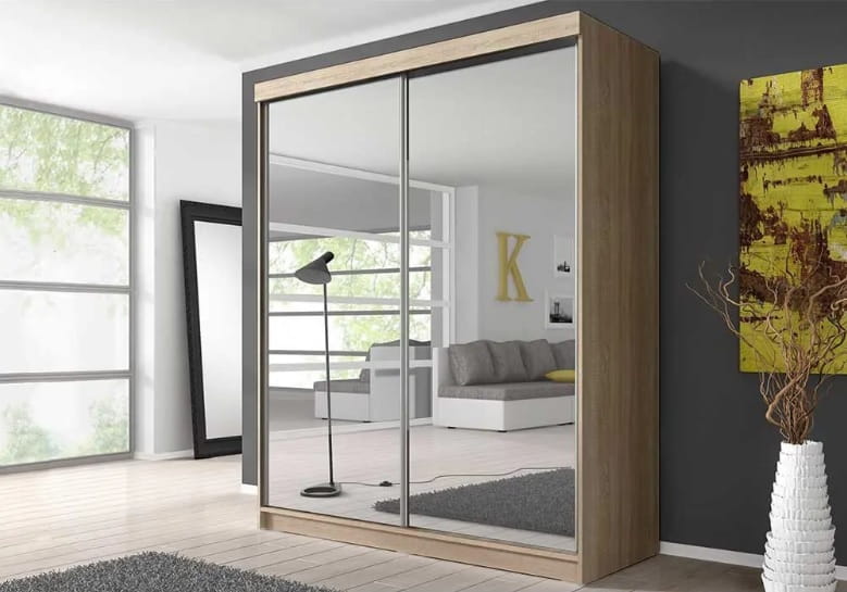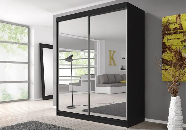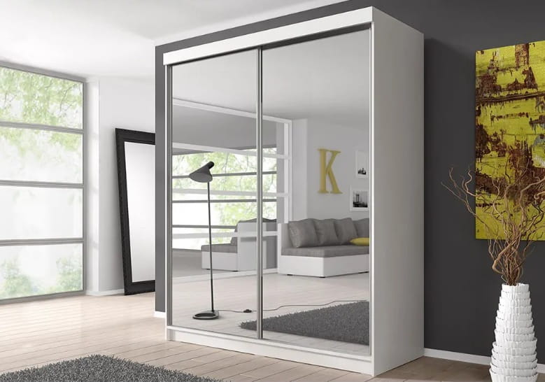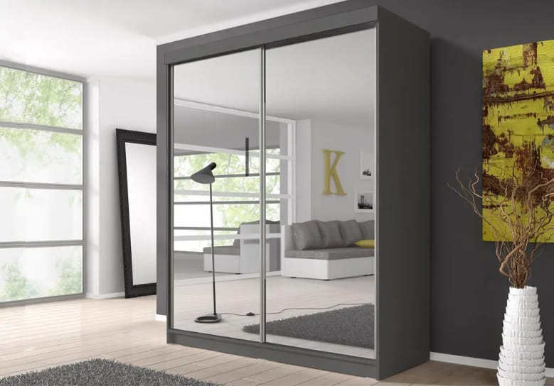 ULTI 20 jest szafą o nowoczesnym wyglądzie. Doskonale odnajdzie się we wnętrzu klasycznego bądź nowoczesnego salonu, przedpokoju czy sypialni. Dostępne są różne warianty kolorystyczne mebla: biały, czarny, dąb sonoma czy grafit. Oba fronty pokrywa lustro dzięki któremu optycznie powiększysz pomieszczenie. Wnętrze podzielone na dwie przestrzenie, jedną z półkami, jedną z drążkiem, która pozwoli pomieścić garderobę najbardziej wymagającego użytkownika.