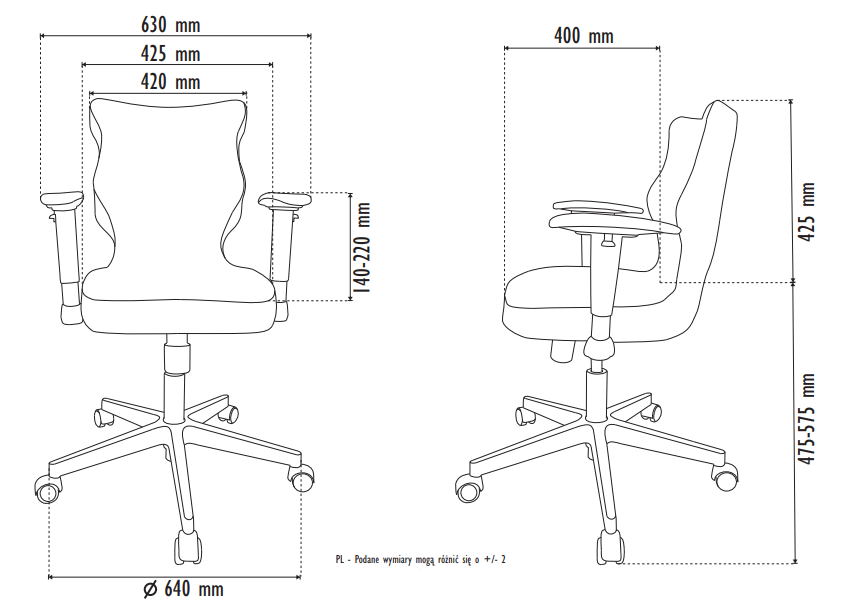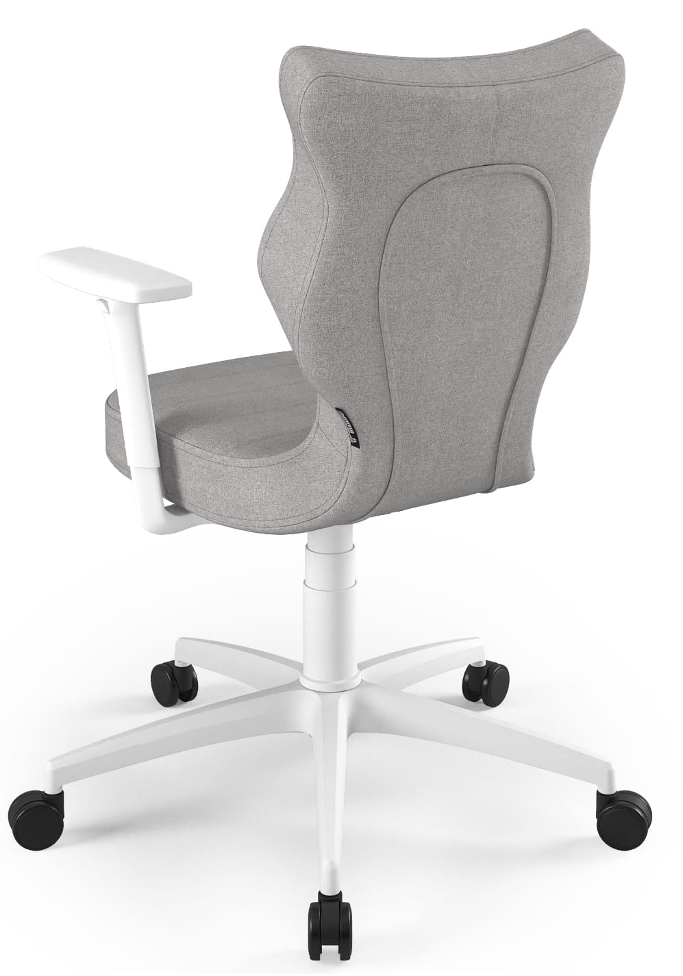 Dobrze dobrane krzesło to podstawa wyposażenia każdego biura czy dziecięcego pokoju. Wygodne tapicerowane siedzisko oraz wyprofilowane oparcie przekłada się nie tylko na jakość wykonywanej pracy, ale także na zdrowie kręgosłupa. Model ten zadba nie tylko o prawidłową postawę ciała, ale również o dobre samopoczucie posiadacza. Dodatkowym plusem są regulowane podłokietniki wykonane z wysokiej jakości tworzywa sztucznego oraz możliwość dopasowania wysokości siedziska, dzięki łatwo dostępnej dźwigni. Krzesło posiada atest higieniczny dla siedziska i zastosowanego w nim wkładu, dzięki czemu może być używane jako wyposażenie pomieszczeń szkolnych, biurowych czy mieszkalnych.