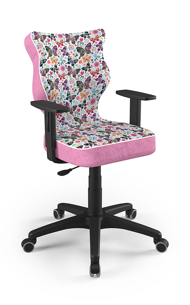 Dobrze dobrane krzesło to podstawa wyposażenia każdego pokoju dziecięcego czy młodzieżowego. Wygodne tapicerowane siedzisko oraz wyprofilowane oparcie przekłada się nie tylko na jakość nauki, ale także na zdrowie i odpowiednie ułożenie kręgosłupa. Model ten zadba nie tylko o prawidłową postawę ciała, ale również o dobre samopoczucie posiadacza. Dodatkowym plusem jest możliwość regulacji wysokości siedziska, dzięki łatwo dostępnej dźwigni, co znacznie wpłynie na komfort użytkowania. Krzesła młodzieżowe występują w dwóch rozmiarach, które można indywidualnie dopasować do wzrostu dziecka.