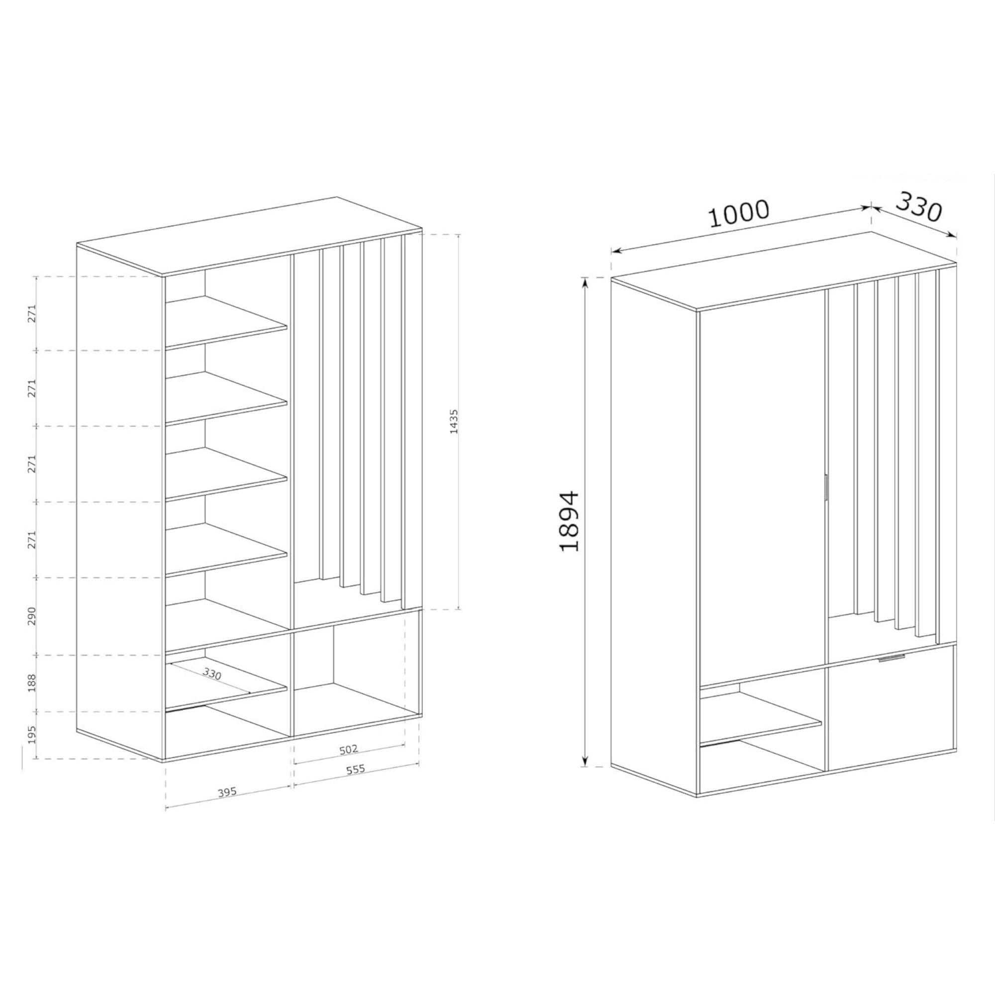 Garderoba z lustrem i lamelami MILO
