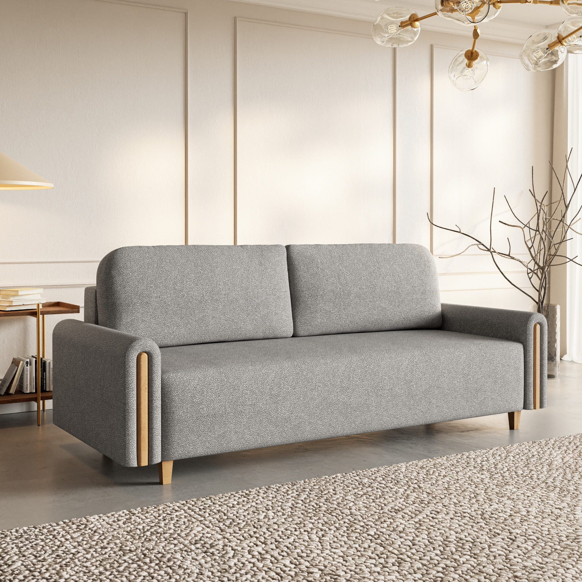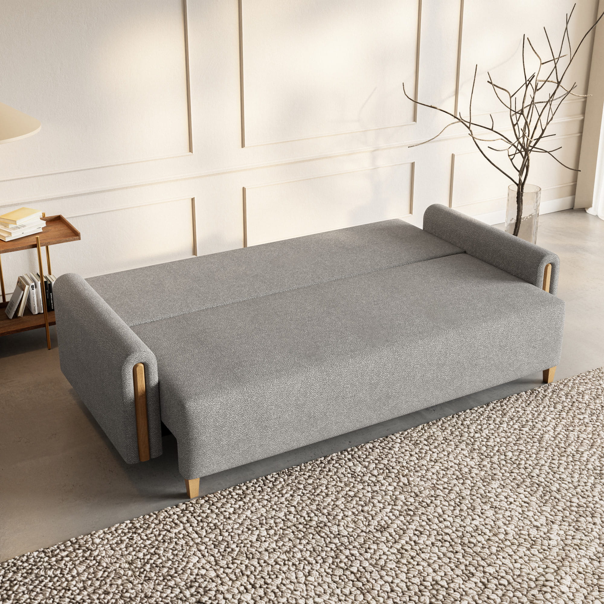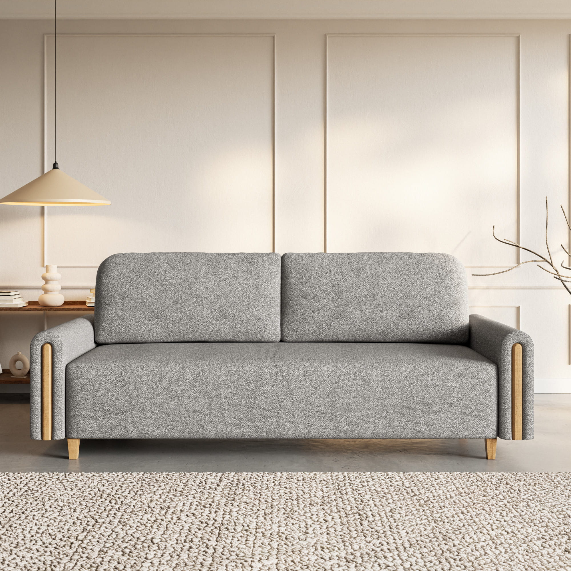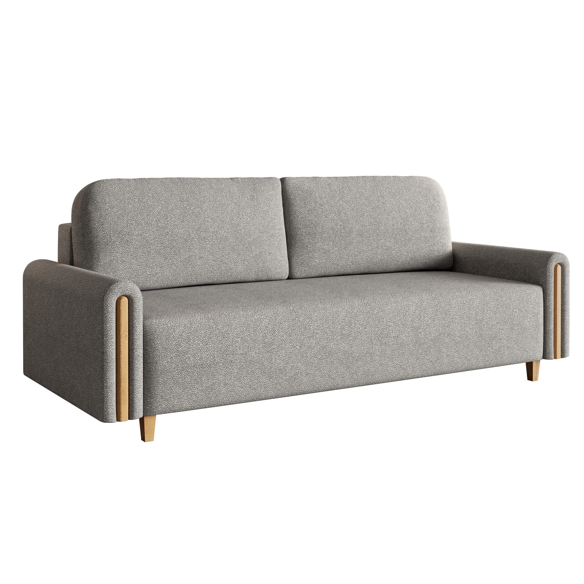 Komfortowe siedzisko i oparcie wykonano z wytrzymałej sprężyny falistej oraz pianki T-35, zapewniającej komfortowy wypoczynek. Dzięki funkcji spania z intuicyjnym mechanizmem rozkładania, kanapę można w prosty sposób zamienić w wygodne miejsce do wieczornego odpoczynku. Praktyczny pojemnik na pościel doceni każdy, kto ceni porządek i funkcjonalne rozwiązania.