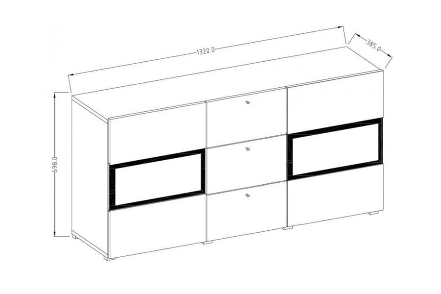 Komoda BAROS została zaprojektowana w nowoczesnych i bardzo aktualnych wariantach kolorystycznych. Cechuje ją funkcjonalny rozkład półek i szuflad, a przede wszystkim dwie, efektowne, przeszklone wnęki, które mogą służyć nie tylko jako miejsce dla wystawnych szkieł ale również pamiątek lub figurek. Ulubione książki znajdą swoje miejsce na szerokim blacie komody.