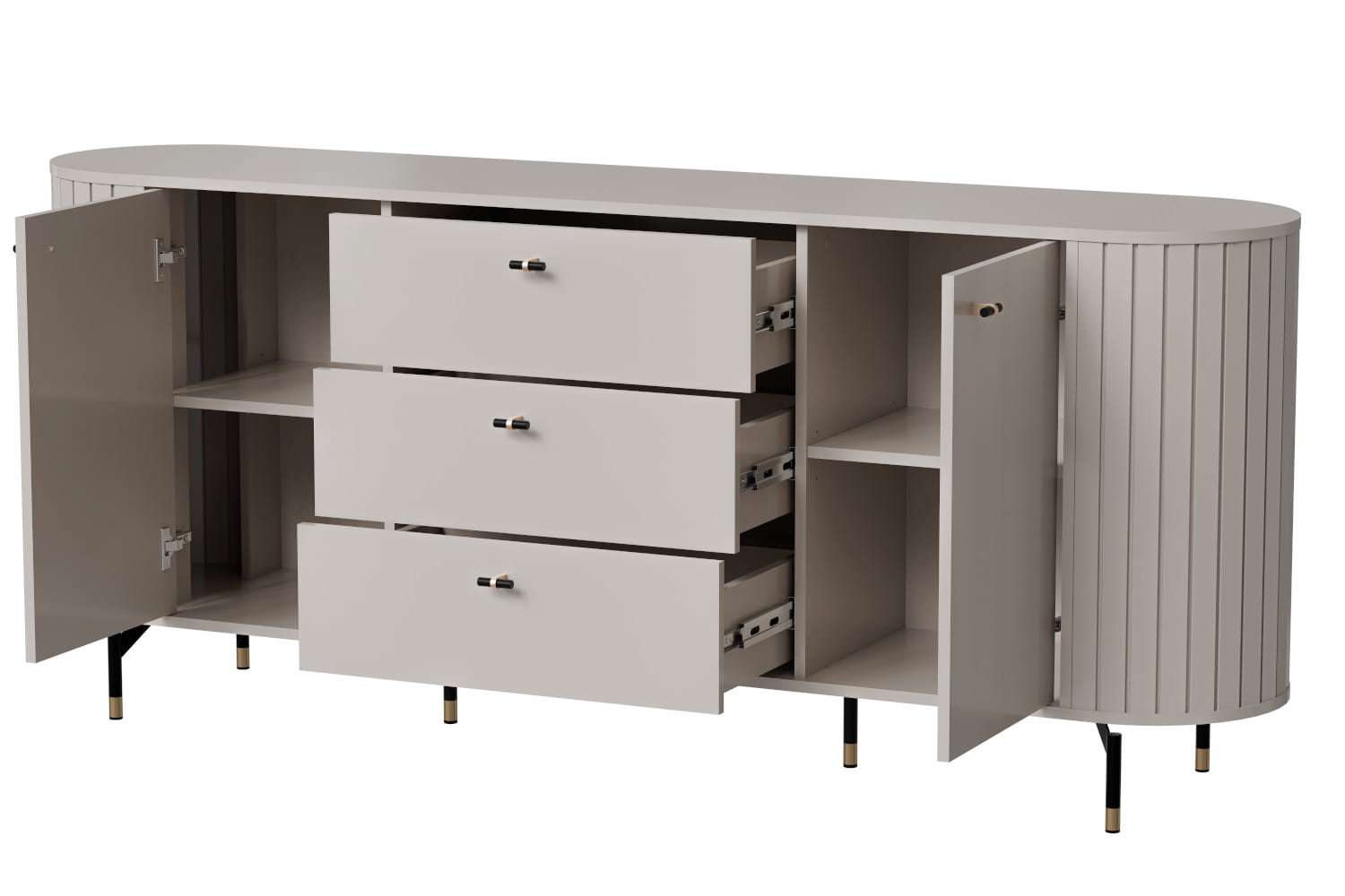 Szeroka komoda ZANTE to idealny wybór dla tych, którzy potrzebują więcej miejsca do przechowywania, ale nie chcą rezygnować z elegancji. Jej zaokrąglone, ryflowane fronty i smukłe nóżki wprowadzają do wnętrza lekkość i wyrafinowanie, czyniąc ją zarówno funkcjonalnym, jak i dekoracyjnym elementem.