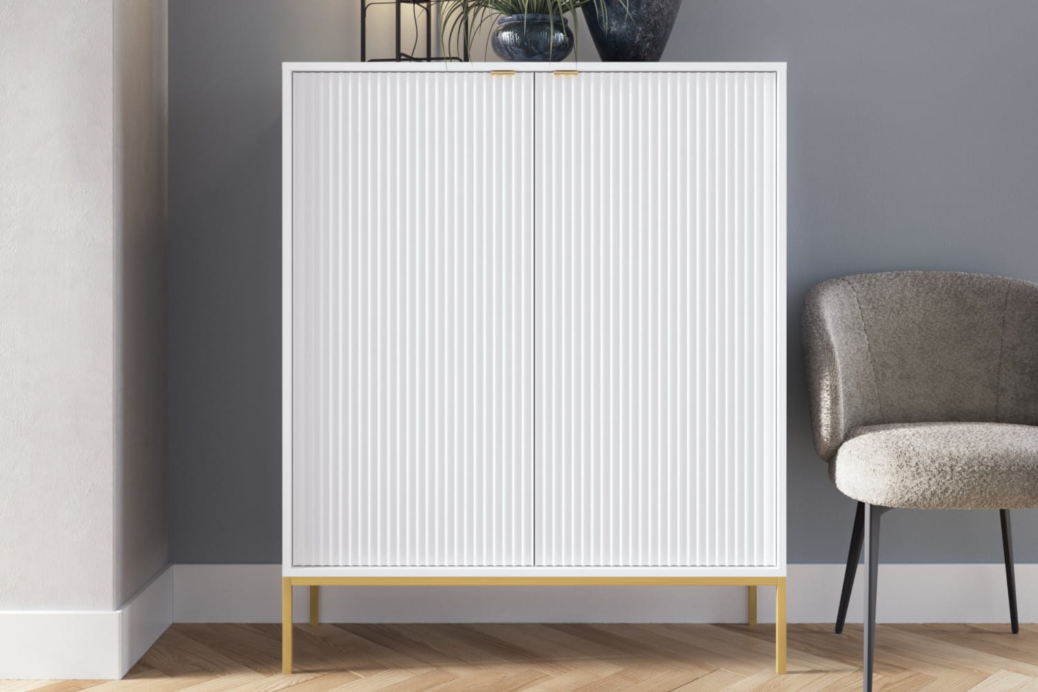 Komoda wysoka Novi zaspokoi potrzeby przechowywania w każdym pokoju dziennym. Może służyć jako barek, komoda ubraniowa, czy szafka na buty w przedpokoju.