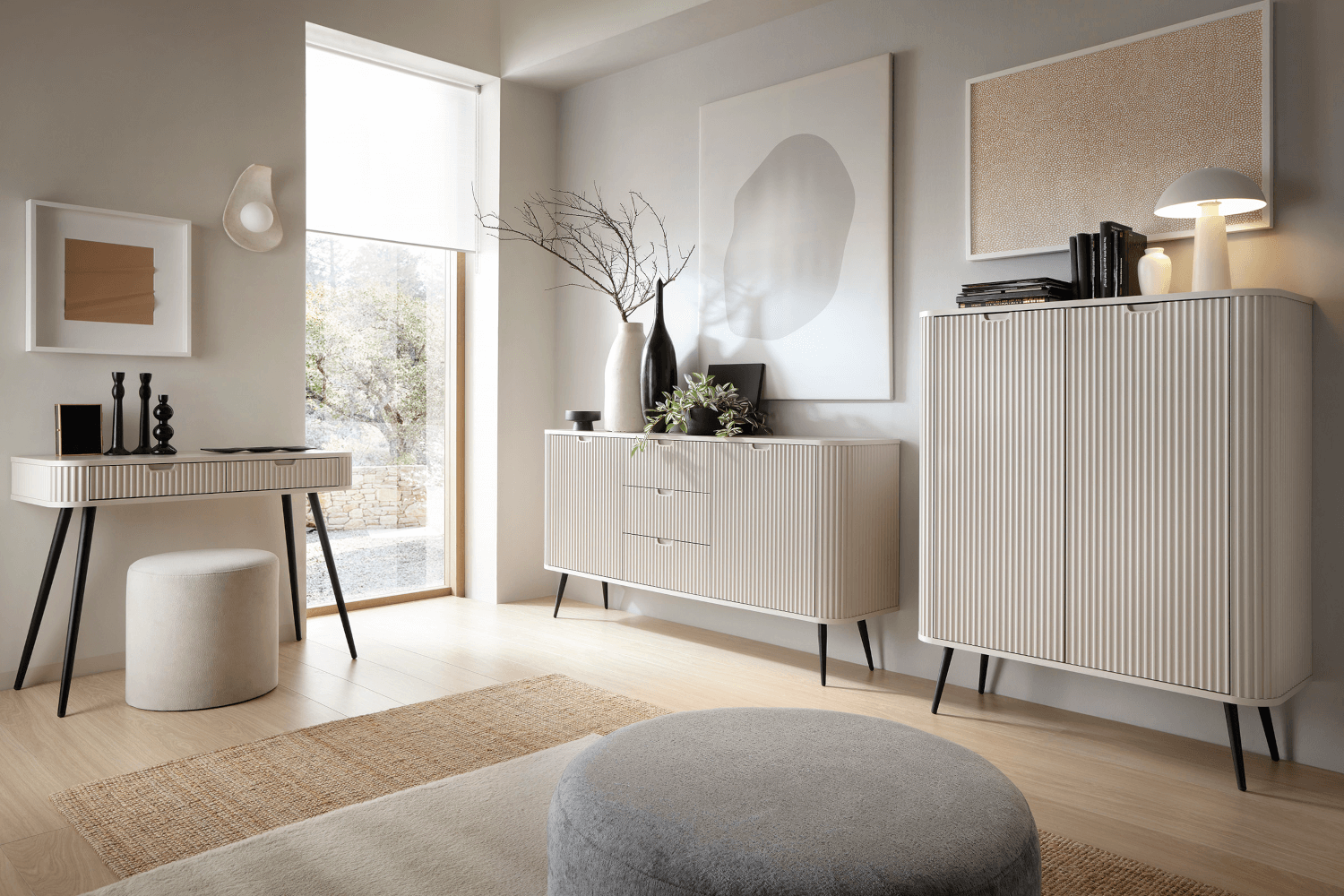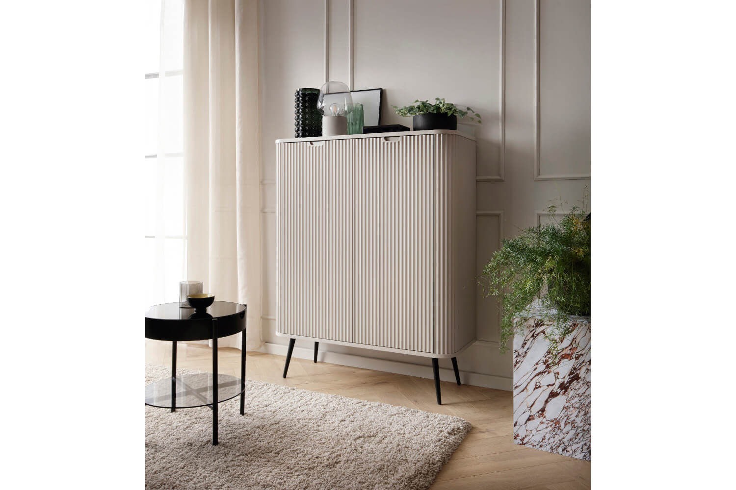 Komoda z drzwiami z frezowanym frontem 103 cm OVO kaszmir