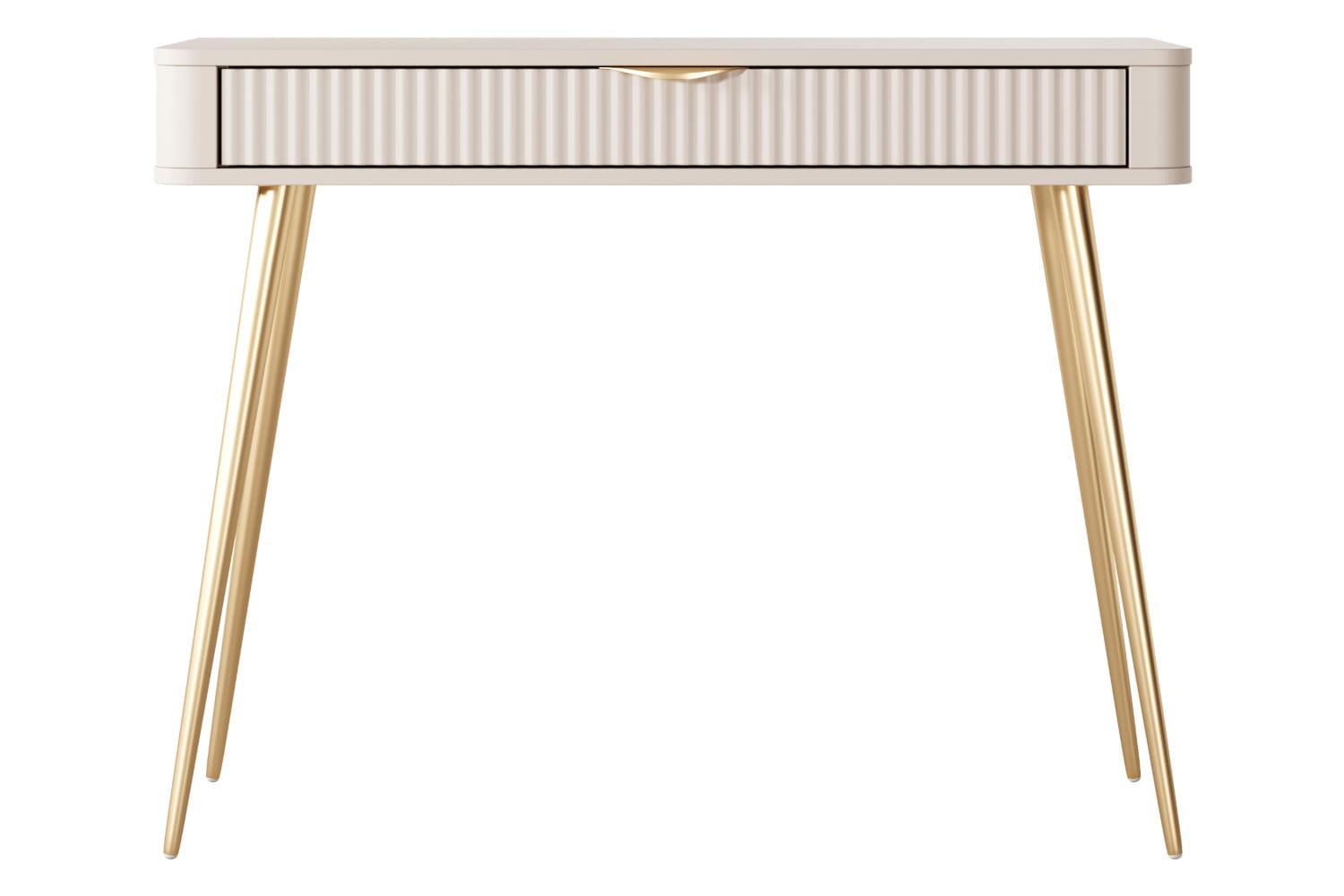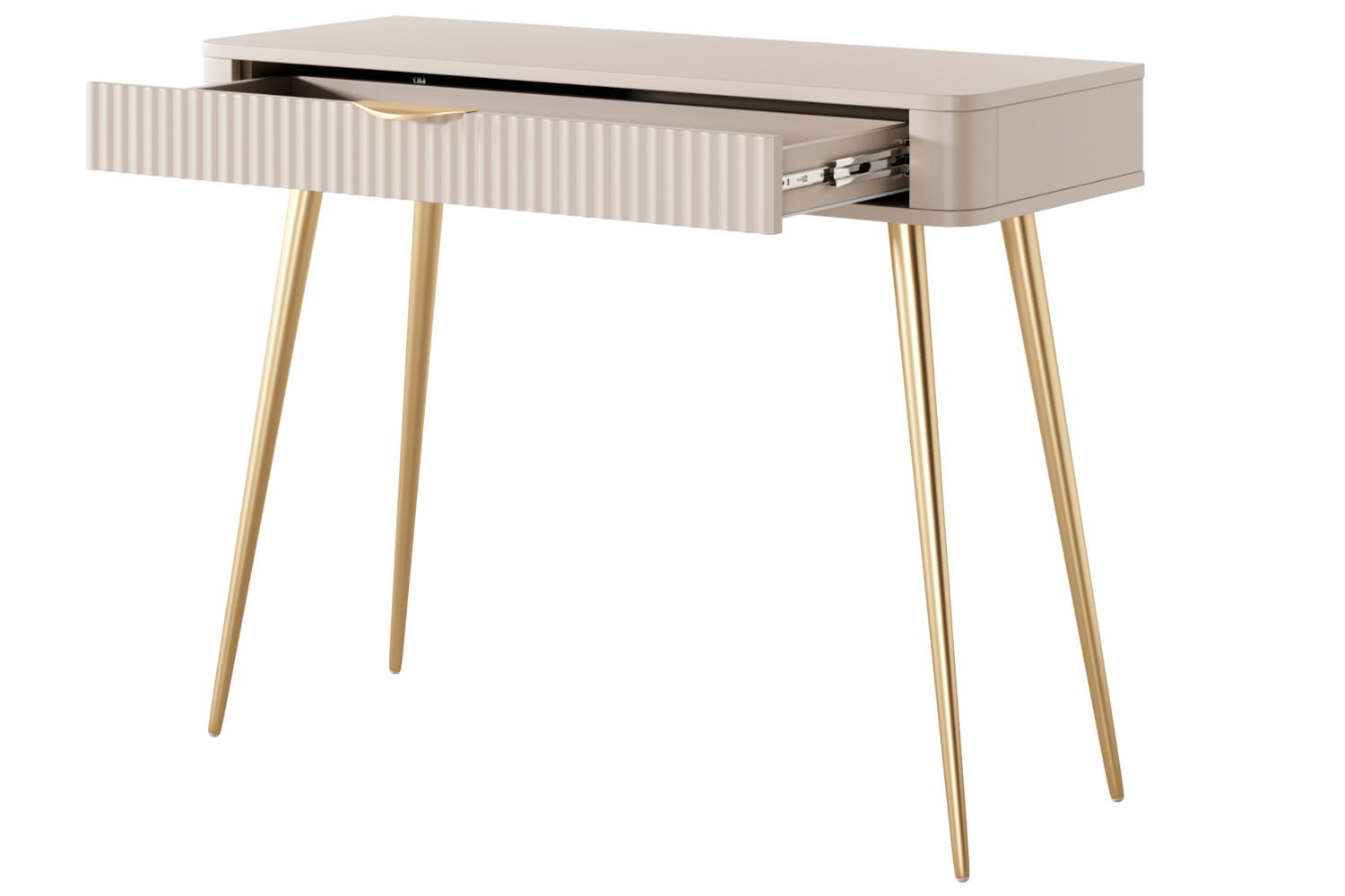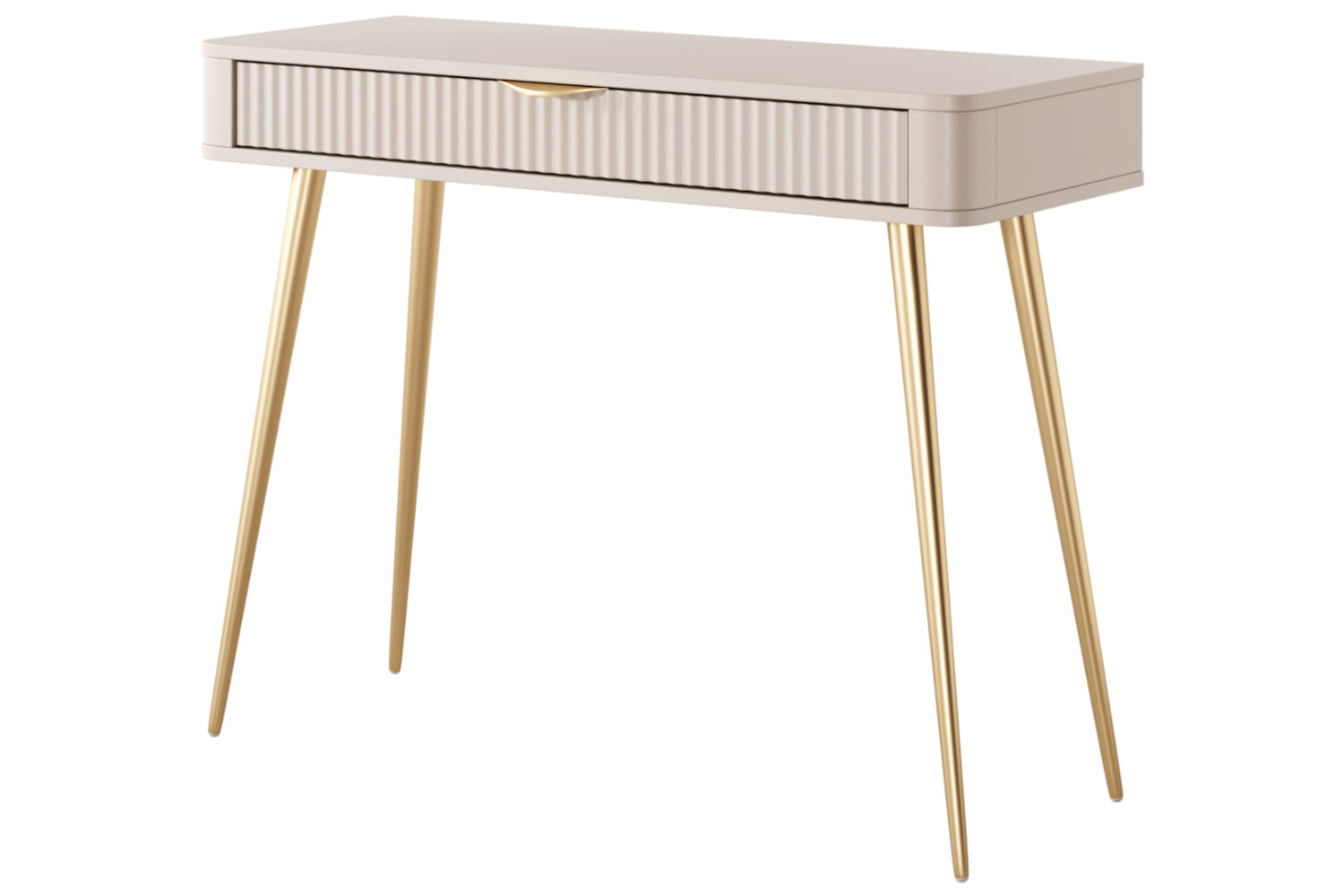 Konsola / toaletka ze złotymi nogami frezowane fronty ADELANTE 100 cm beżowa
