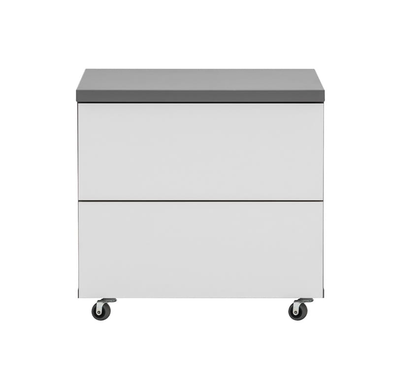 Kontenerek z szufladami MONDA w kolorze Popiel/Biały połysk, został wykonany z wysokiej jakości płyty laminowanej o grubości 16 mm. Płyty łączone są ze sobą za pomocą kołków drewnianych oraz łączy mimośrodkowych. Korpus każdego elementu został oklejony obrzeżem ABS.