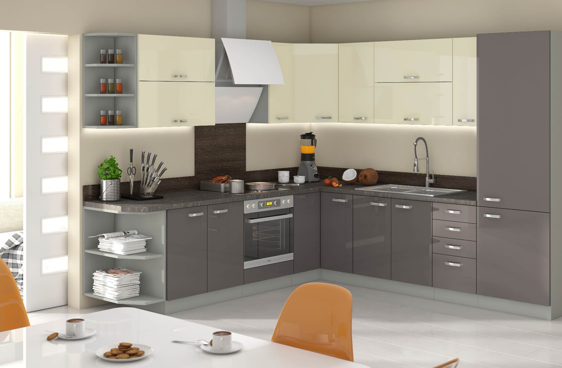 Kuchnia to centrum rodzinne i ważne jest by przy porannej kawie, obiedzie, kolacji, lub innych codziennych czynnościach czuć komfort i czerpać jak najwięcej przyjemności z użytkowania naszej kuchni. Modne, eleganckie, solidne meble kuchenne, to cechy które idealnie odzwierciedlają naszą kuchnie Biano. Dzięki temu systemowi jesteś w stanie stworzyć kuchnię swoich marzeń i zaskoczyć najbliższych.
