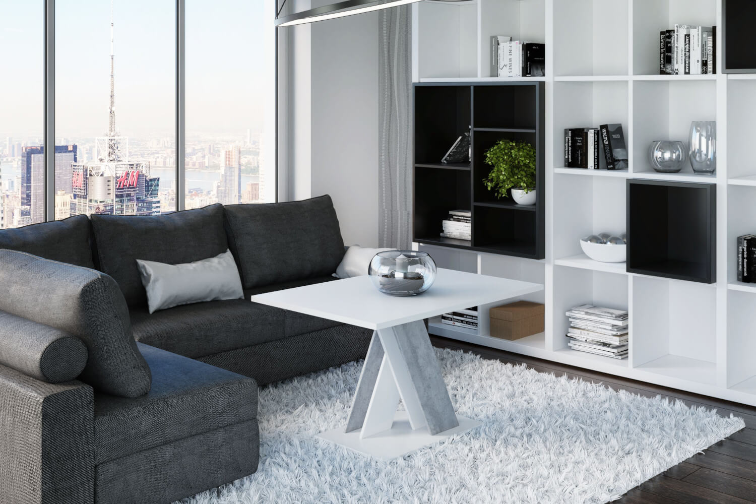 Innowacyjna ława BONX została wykonana przy użyciu wytrzymałej i solidnej płyty laminowanej o grubości 32 mm. Pomieszczenie w którym zostanie umieszczona ława BONX nabierze blasku i świeżości, wnętrze optycznie się powiększy, a użytkownikowi pozostanie cieszyć się praktycznymi aspektami jej użytkowania. Na nietuzinkowy wygląd mebla składają się elementy wykonane w kolorach biały mat oraz beton będące razem jednym z najmodniejszych połączeń. Dzięki jasnej kolorystyce ława może zostać wykorzystana do przeróżnych aranżacji, nie bacząc na dominujące w nich barwy.