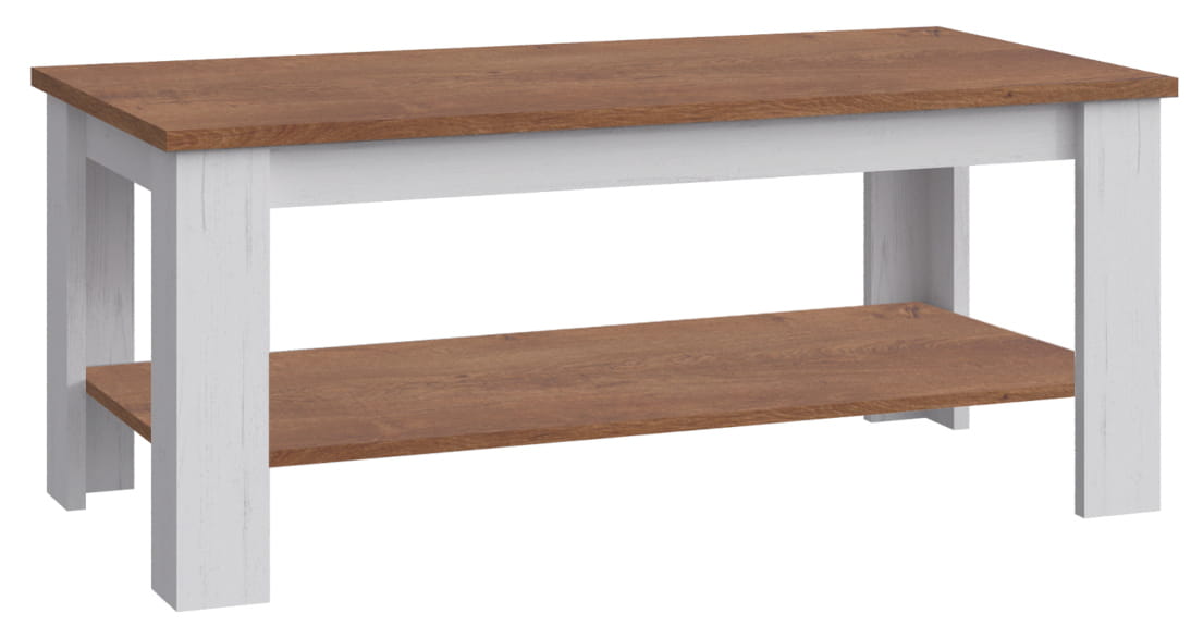 Ława umieszczona w salonie będzie świetną alternatywą dla mniejszych stolików kawowych. Prosta konstrukcja oferuje szeroki blat oraz dolną półkę na rzeczy jakie zechcesz mieć w zasięgu ręki. Stylowy i solidny, będzie zamieszkiwał Twoje wnętrze przed długi czas.