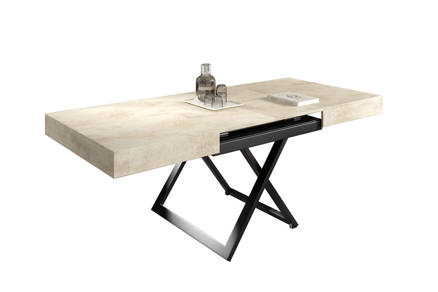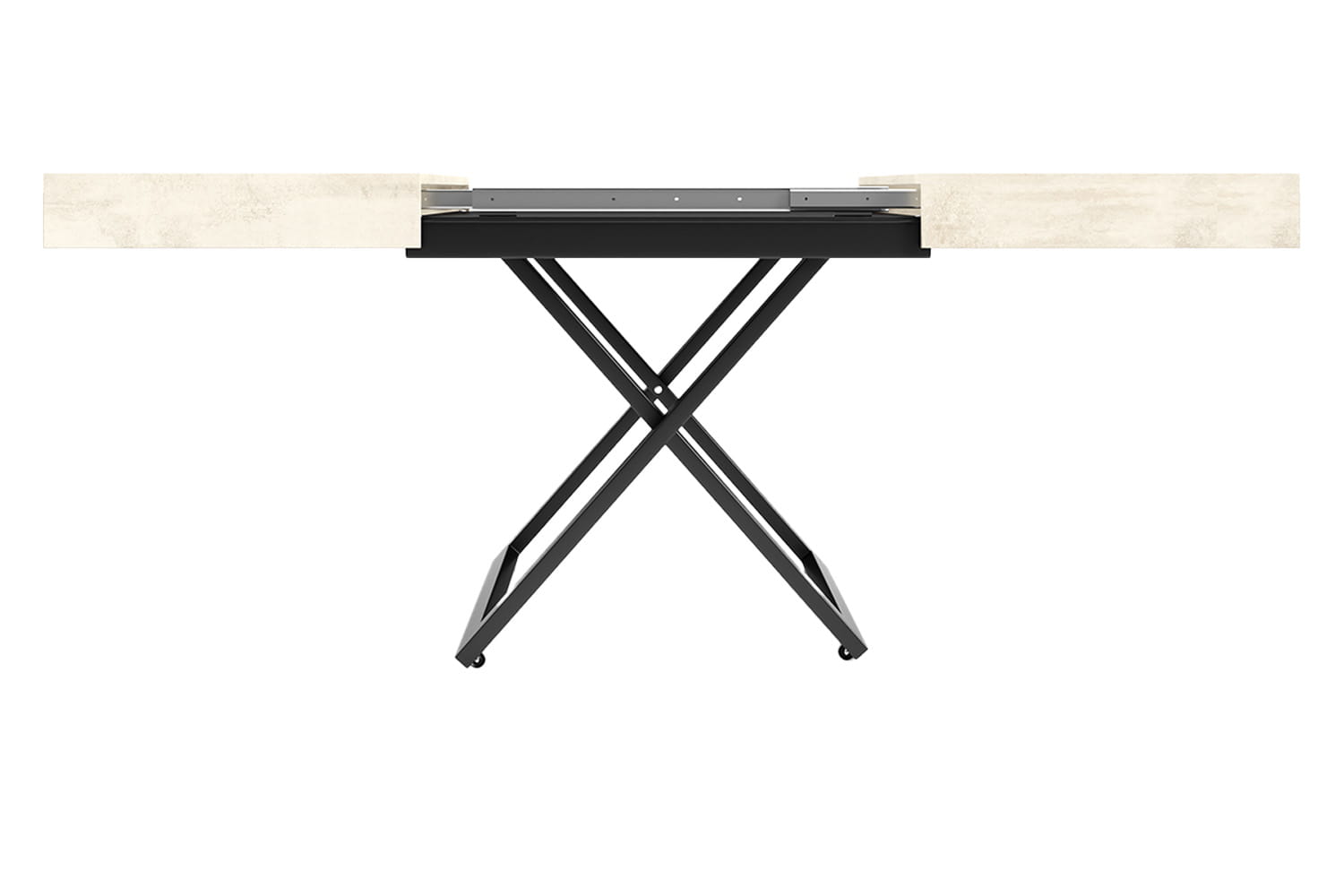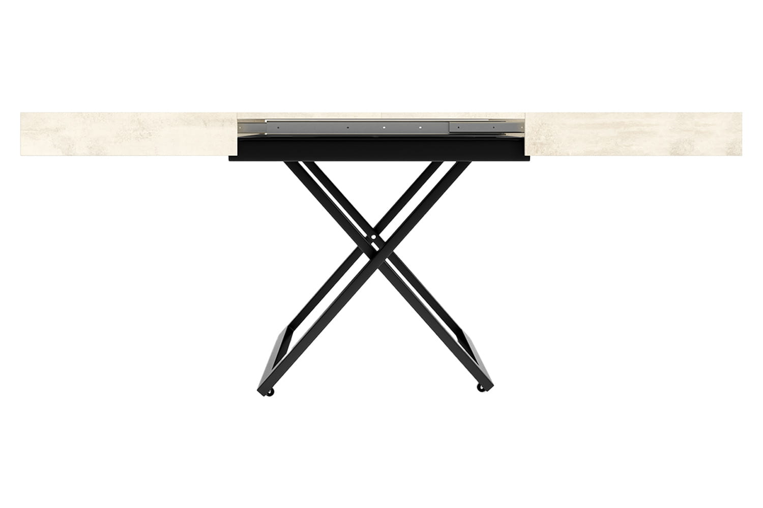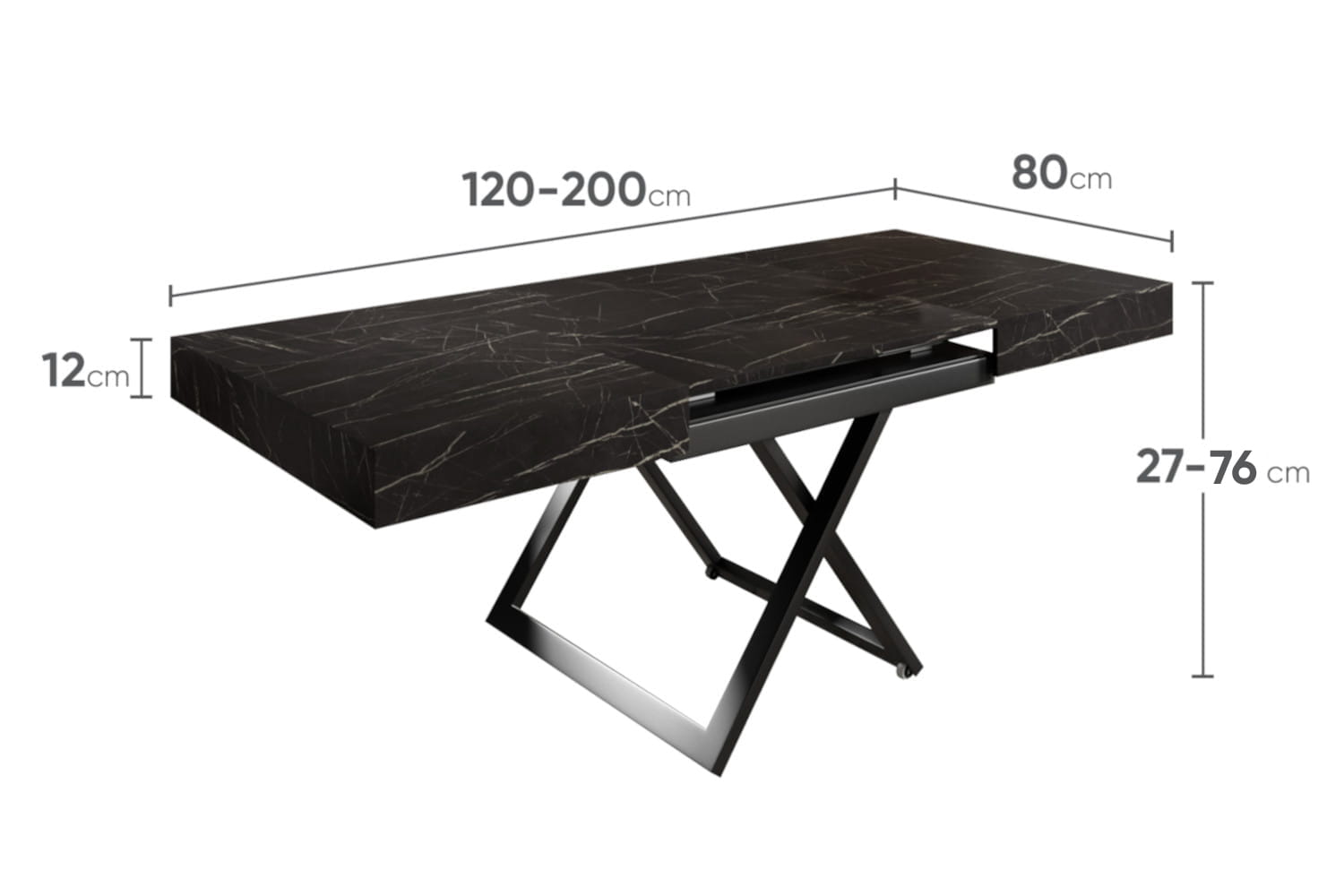 Blat o długości 120 cm można przedłużyć do 200 cm za pomocą dwóch wkładek po 40 cm każda. Możliwość rozłożenia o jedną lub dwie wkładki zapewnia dodatkową elastyczność, umożliwiając dostosowanie mebla do różnorodnych potrzeb, od codziennego użytku po większe spotkania.