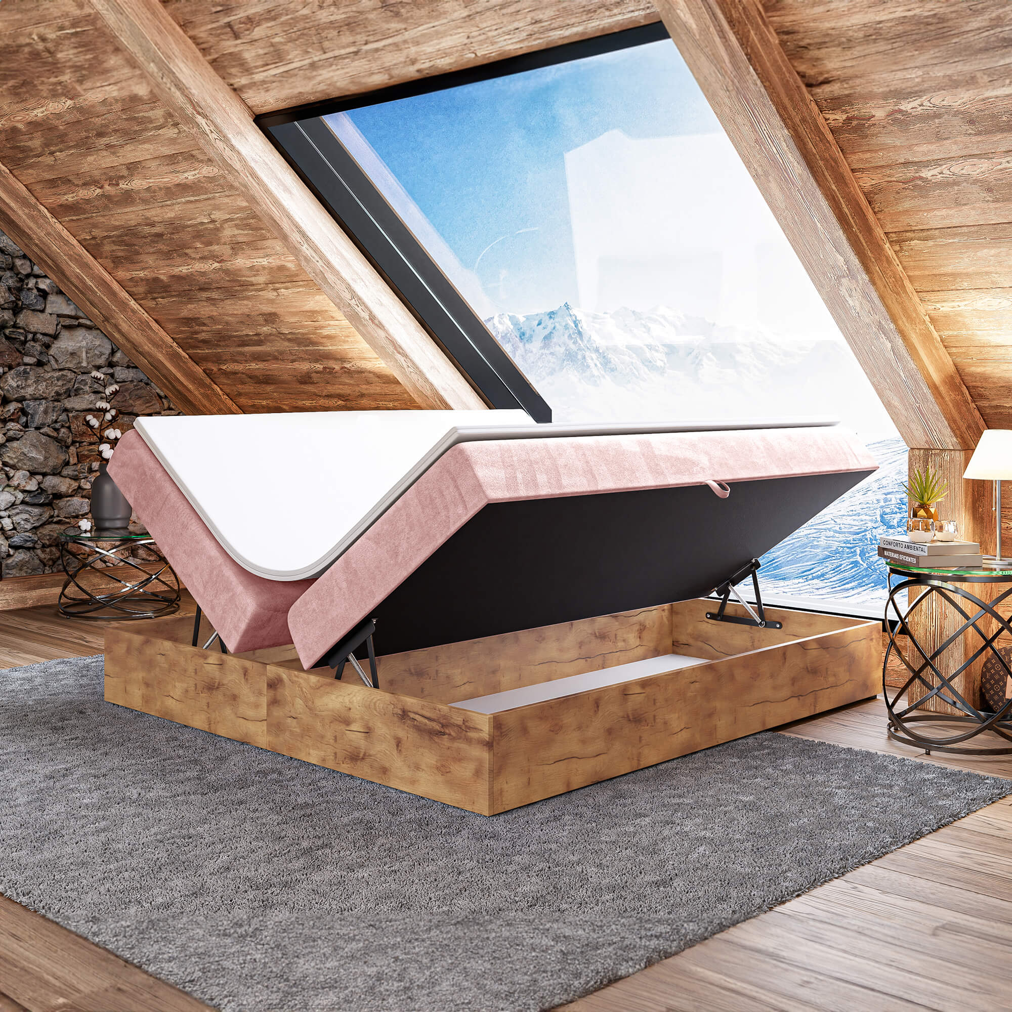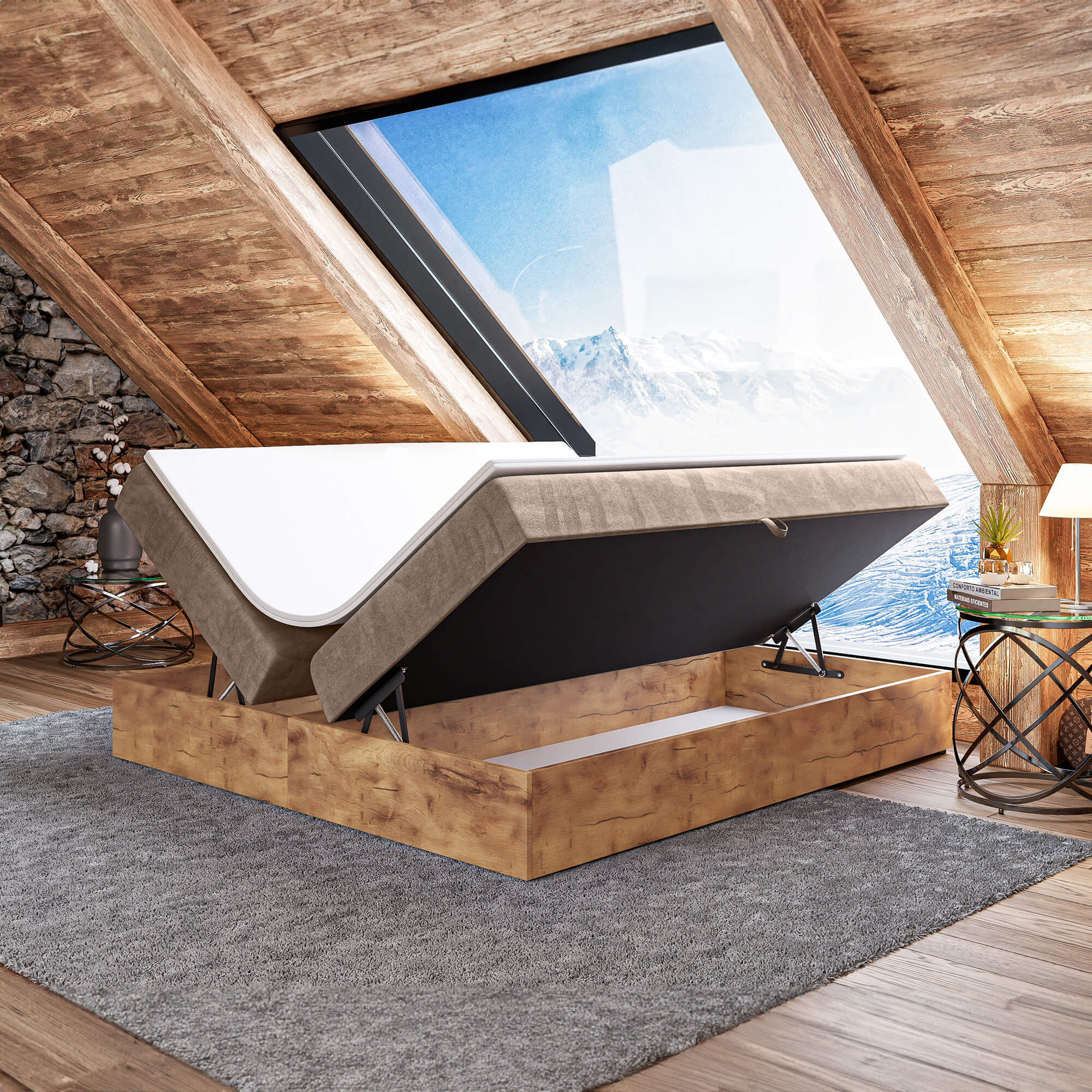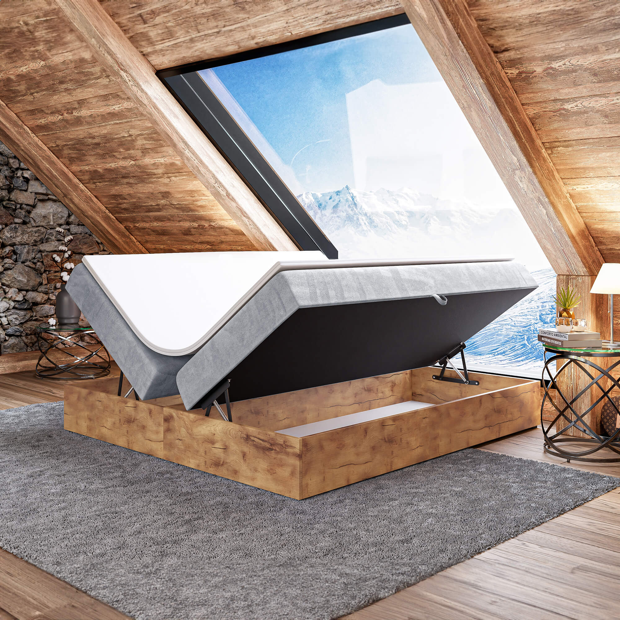 Łóżko kontynentalne z pojemnikami na pościel WOODIN BOX