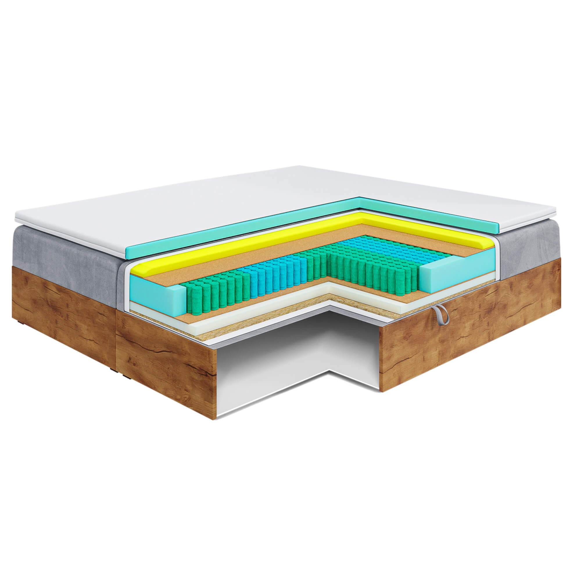 Model WOODIN BOX to nowoczesny wybór dla osób ceniących komfort i funkcjonalność. Wyróżnia się na tle innych łóżek tym, że zamiast tradycyjnego zagłówka, oferuje prostszą konstrukcję. Bryła ta została wyposażona w dwa pojemniki na pościel, zapewniając dodatkowe miejsce do przechowywania. Wbudowany materac bonellowy gwarantuje solidne podparcie dla ciała oraz komfortowy sen.