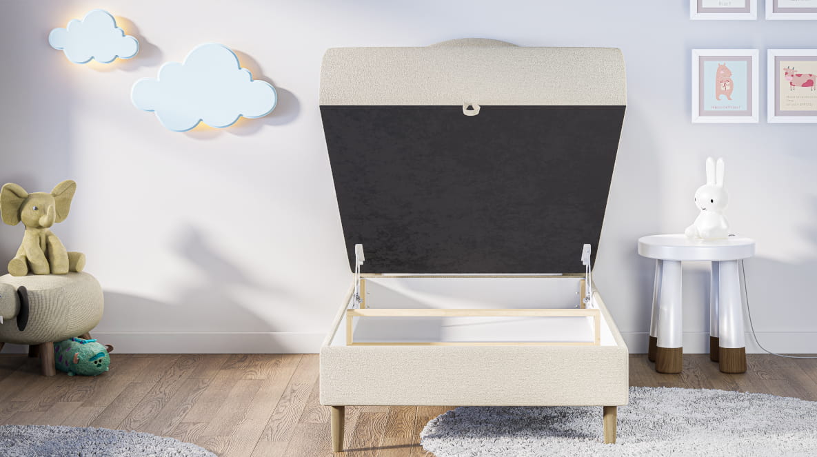 Model łóżka dziecięcego BALIO stworzono z myślą o potrzebach młodego, dorastającego użytkownika. Oferuje miękkie oparcie, pozbawione ozdobnych przeszyć czy guzików. Konstrukcję wzniesiono na drewnianych nóżkach, świetnie współgrających z możliwymi do wyboru tkaninami. Podstawę bryły stanowi skrzynia z pojemnikiem na pościel otwieranym z przodu. W standardowym wyposażeniu znajduje się materac bonellowy. Istnieje możliwość modyfikacji tego komponentu, poprzez wybór opcji pocket oferującej lepszą elastyczność punktową.
