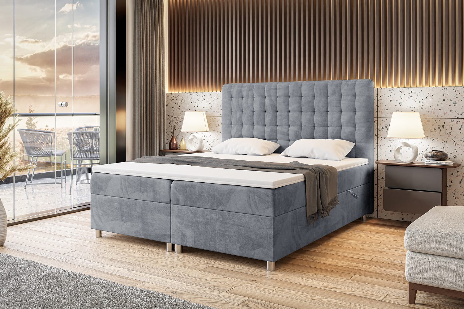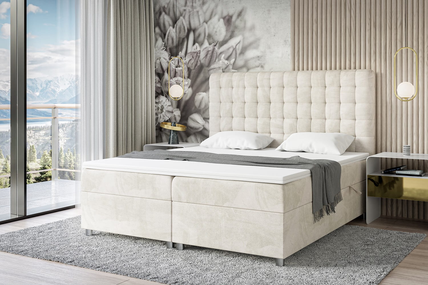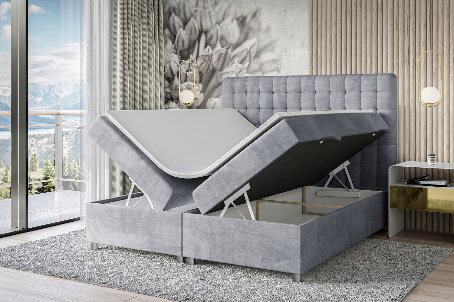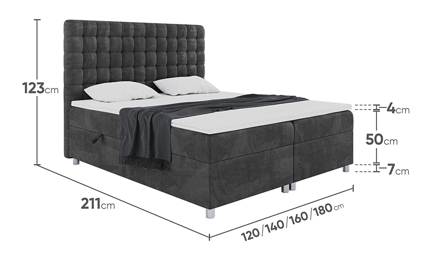Model ASTON to boxspring z pojemnikiem na pościel, dostępny w kilku różnych wybarwieniach oraz rozmiarach.