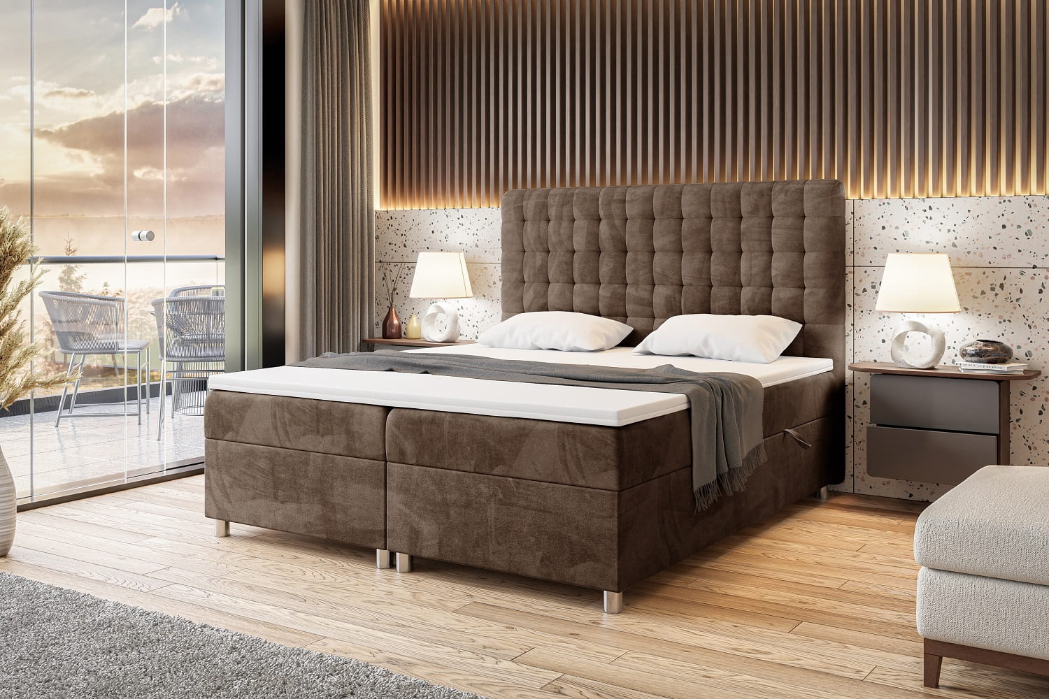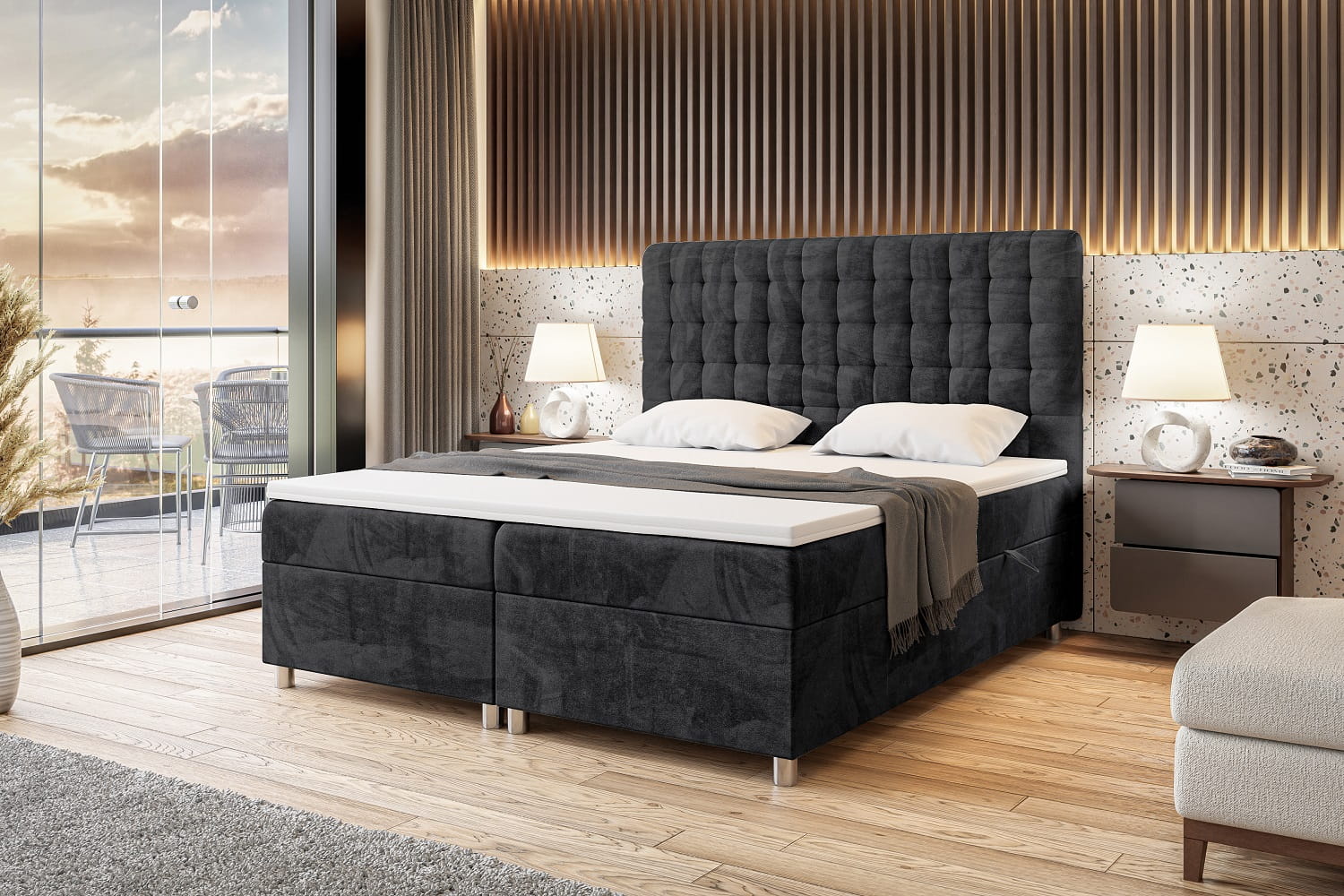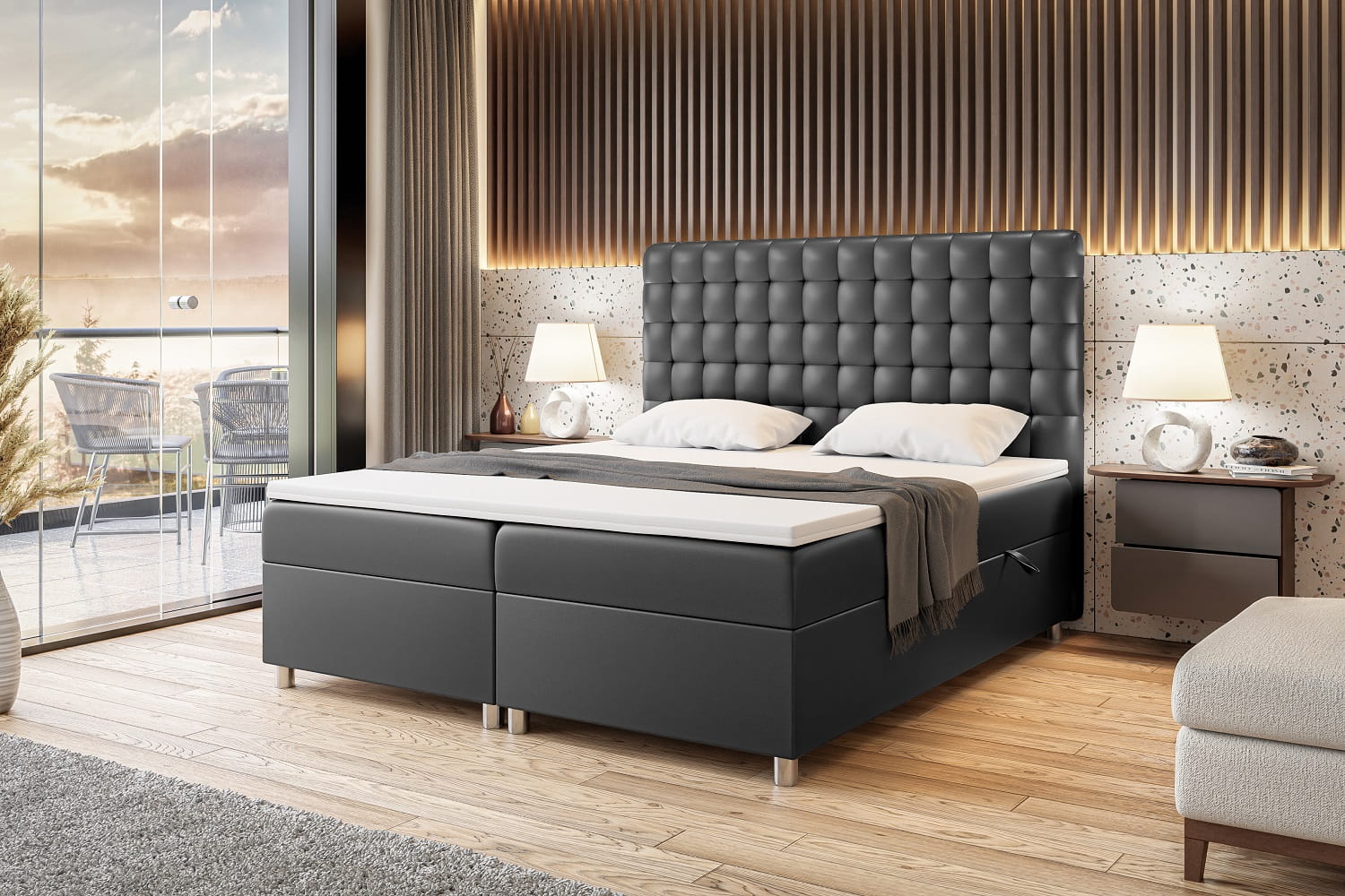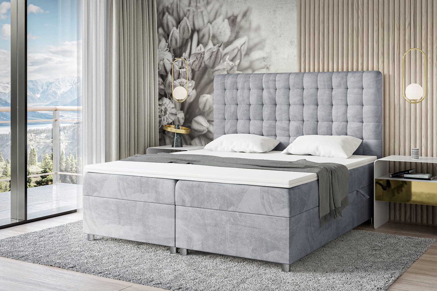 Model ASTON to boxspring z pojemnikiem na pościel, dostępny w kilku różnych wybarwieniach oraz rozmiarach.