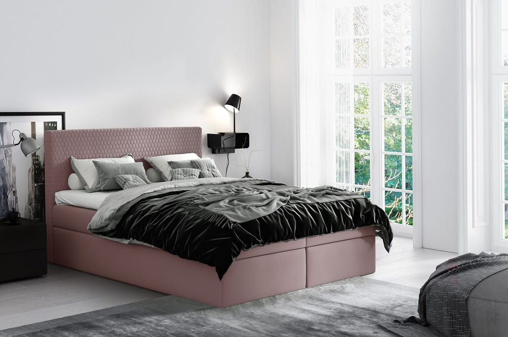 Łóżko kontynentalne KOSMO z ozdobnym zagłówkiem