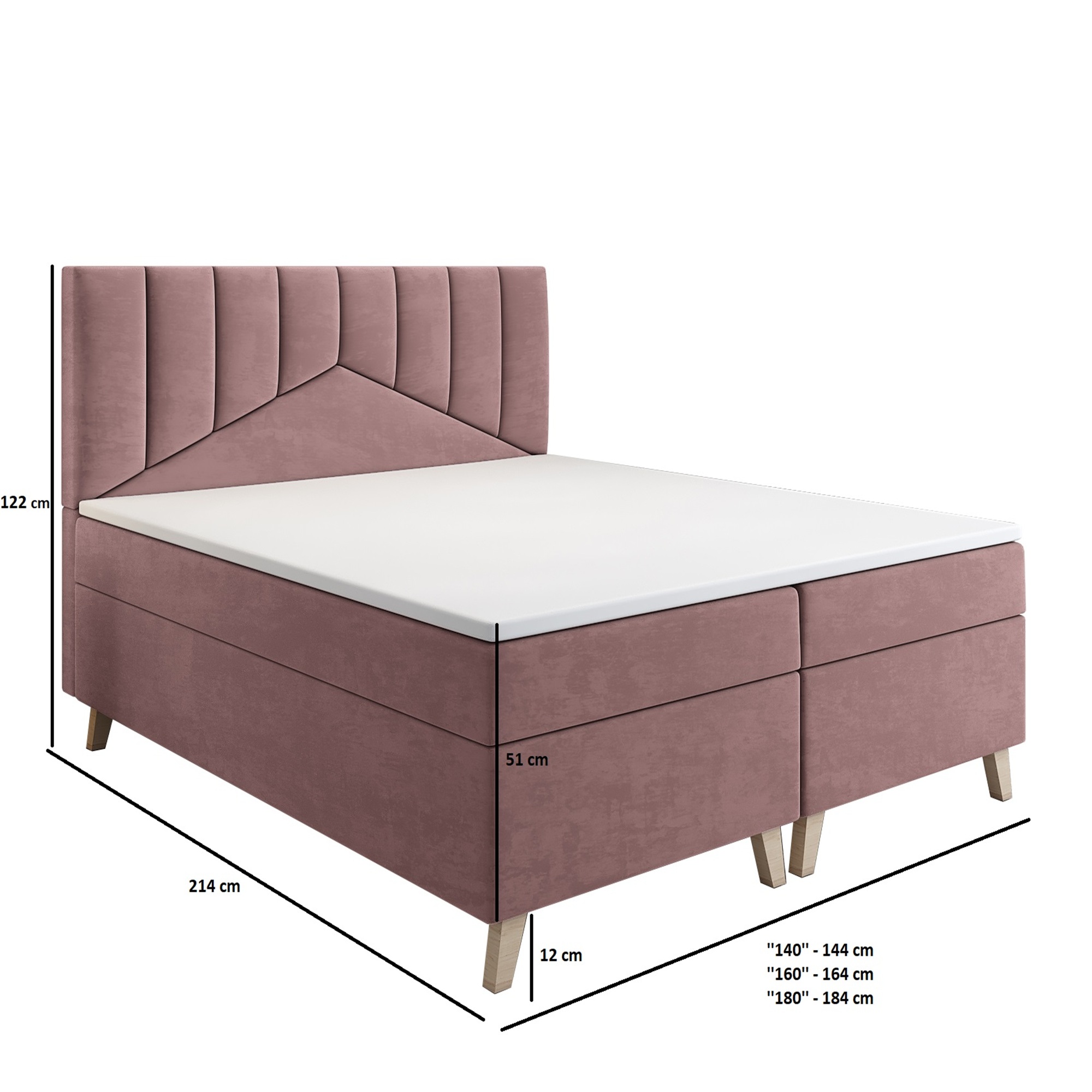 - szerokość: 122 cm / 142 cm / 162 cm / 182 cm / 214 cm
