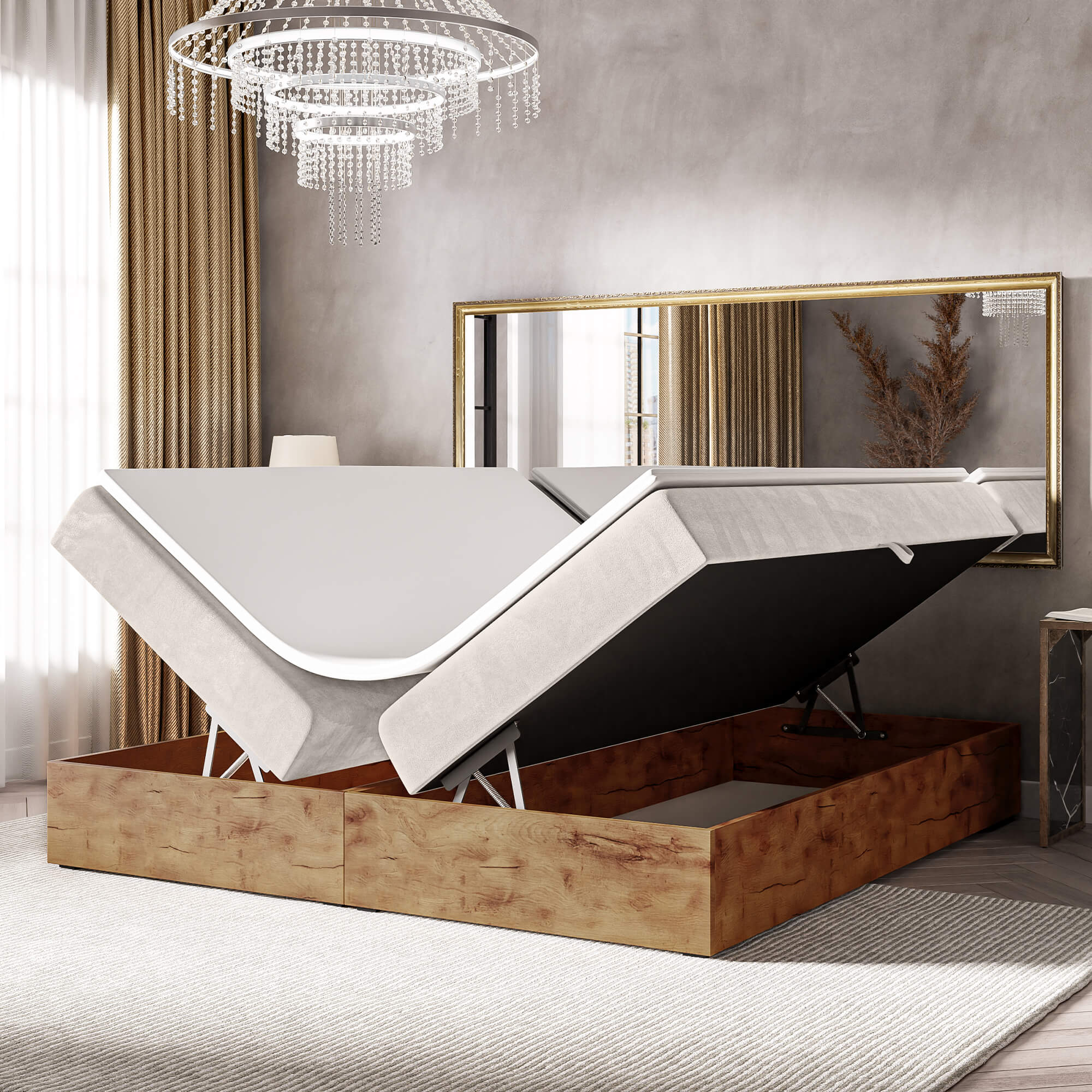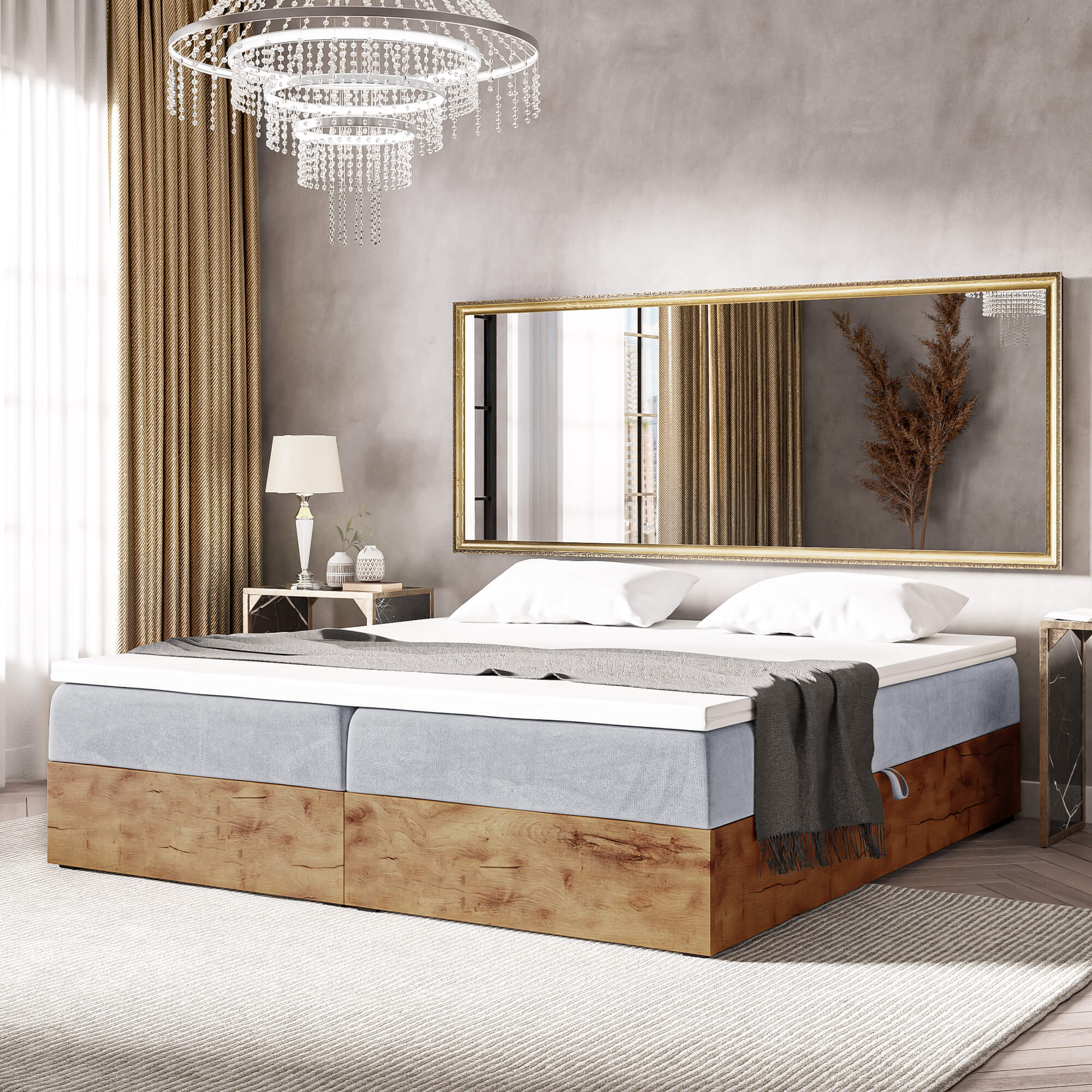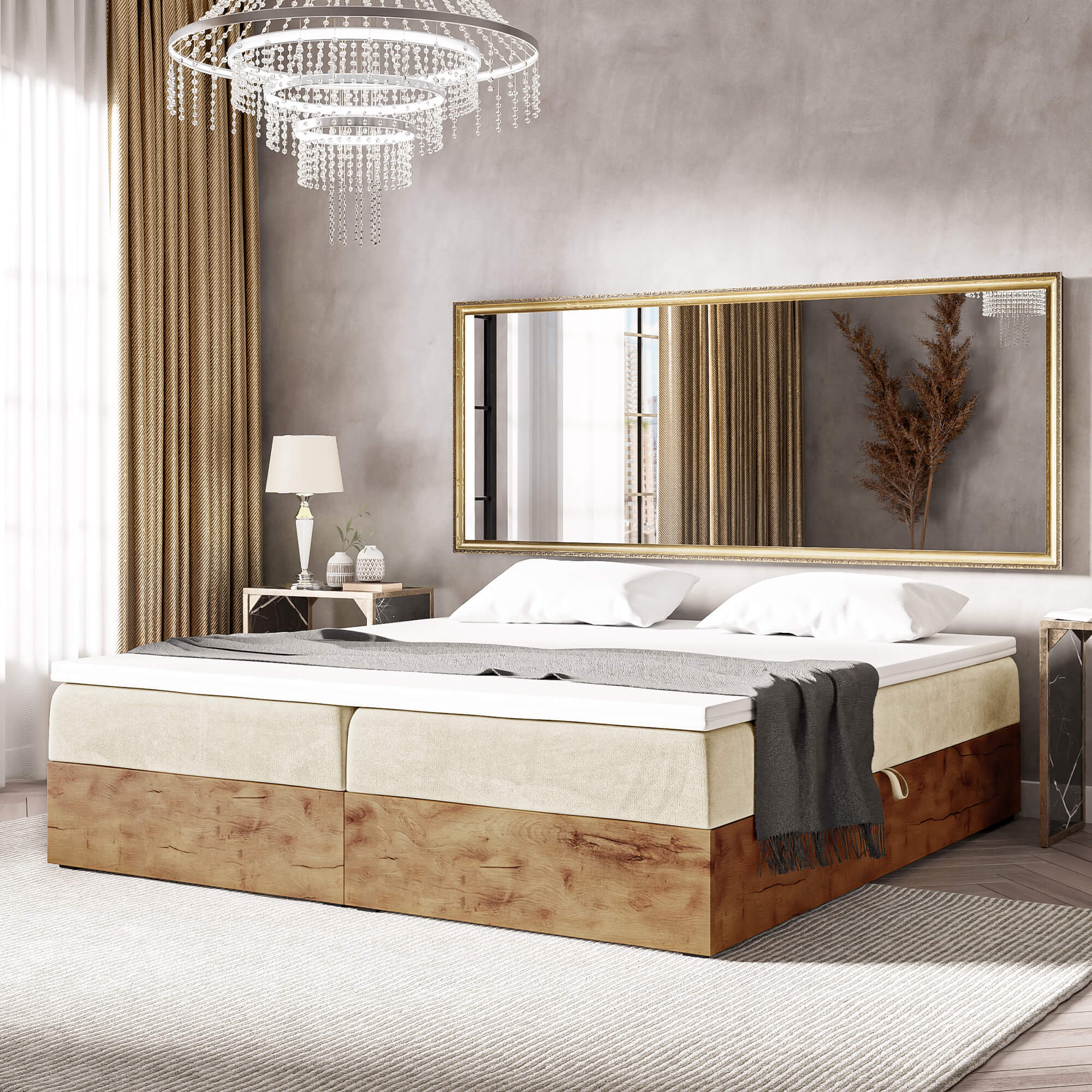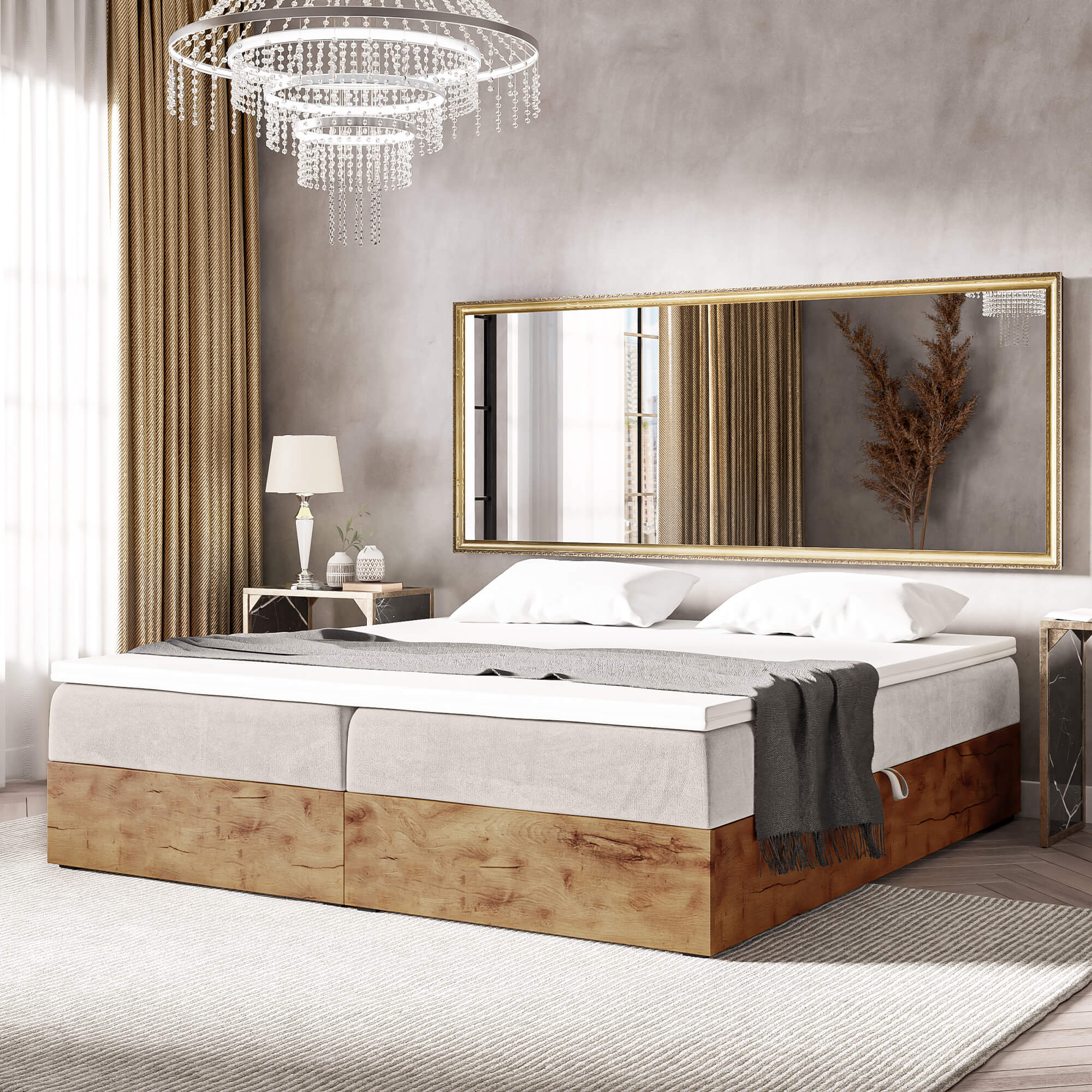 Łóżko kontynentalne ze skrzyniami WOODIN BOX 220 cm