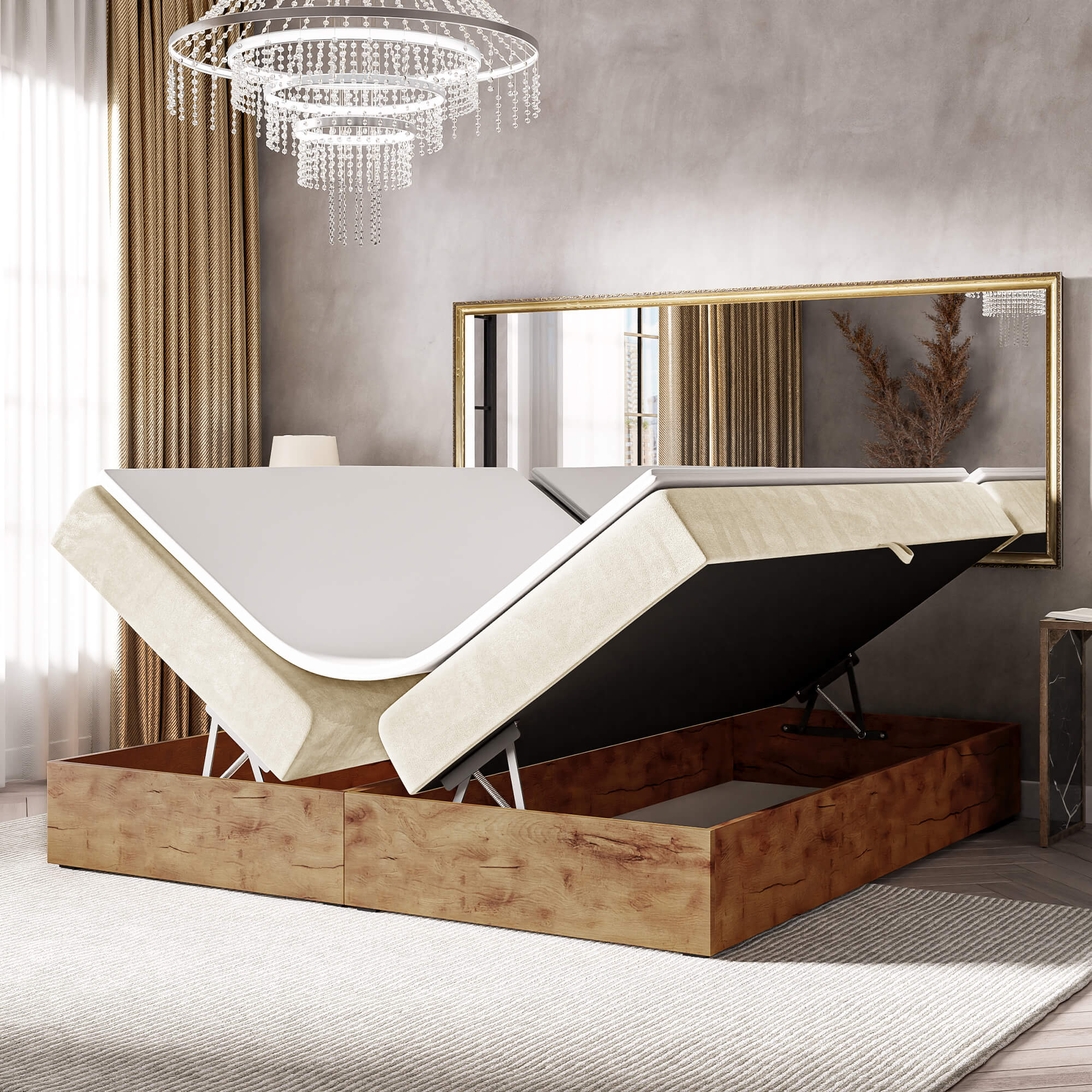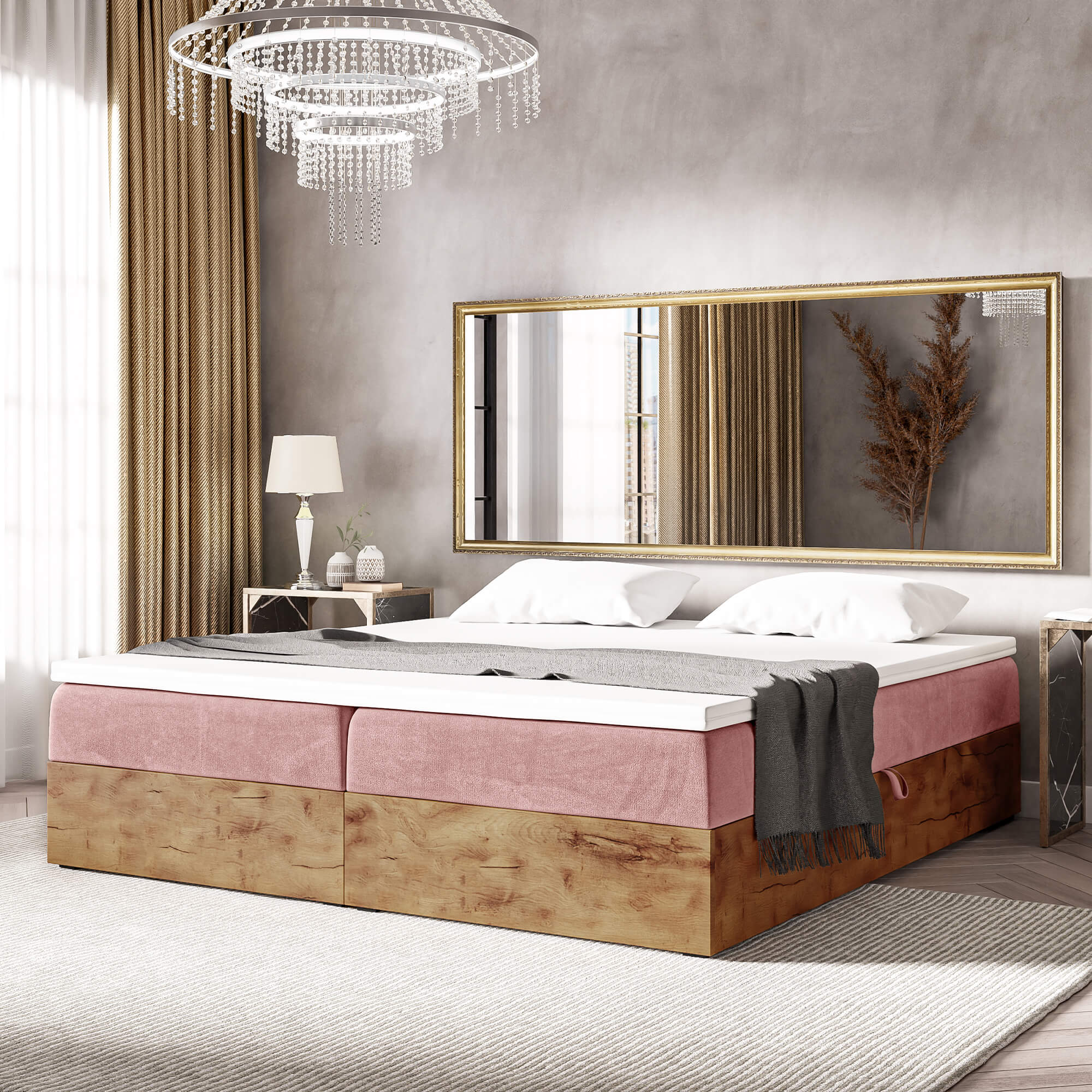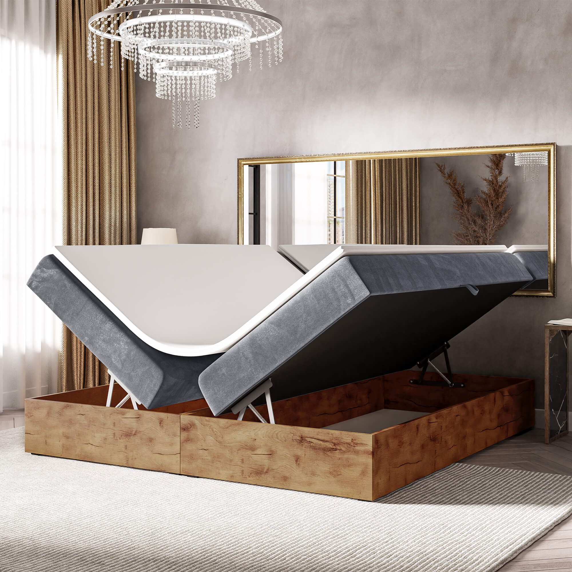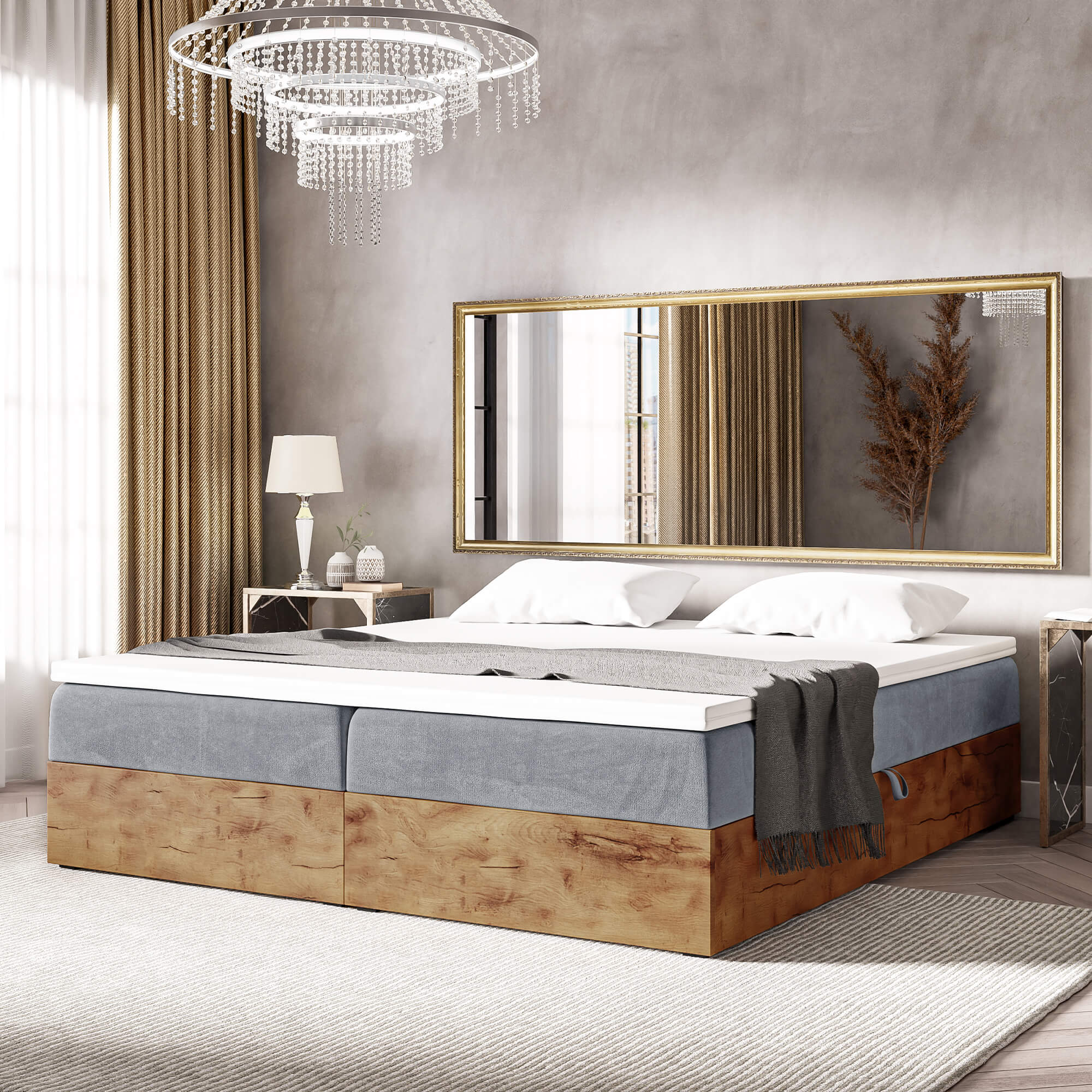 Łóżko kontynentalne ze skrzyniami WOODIN BOX 220 cm