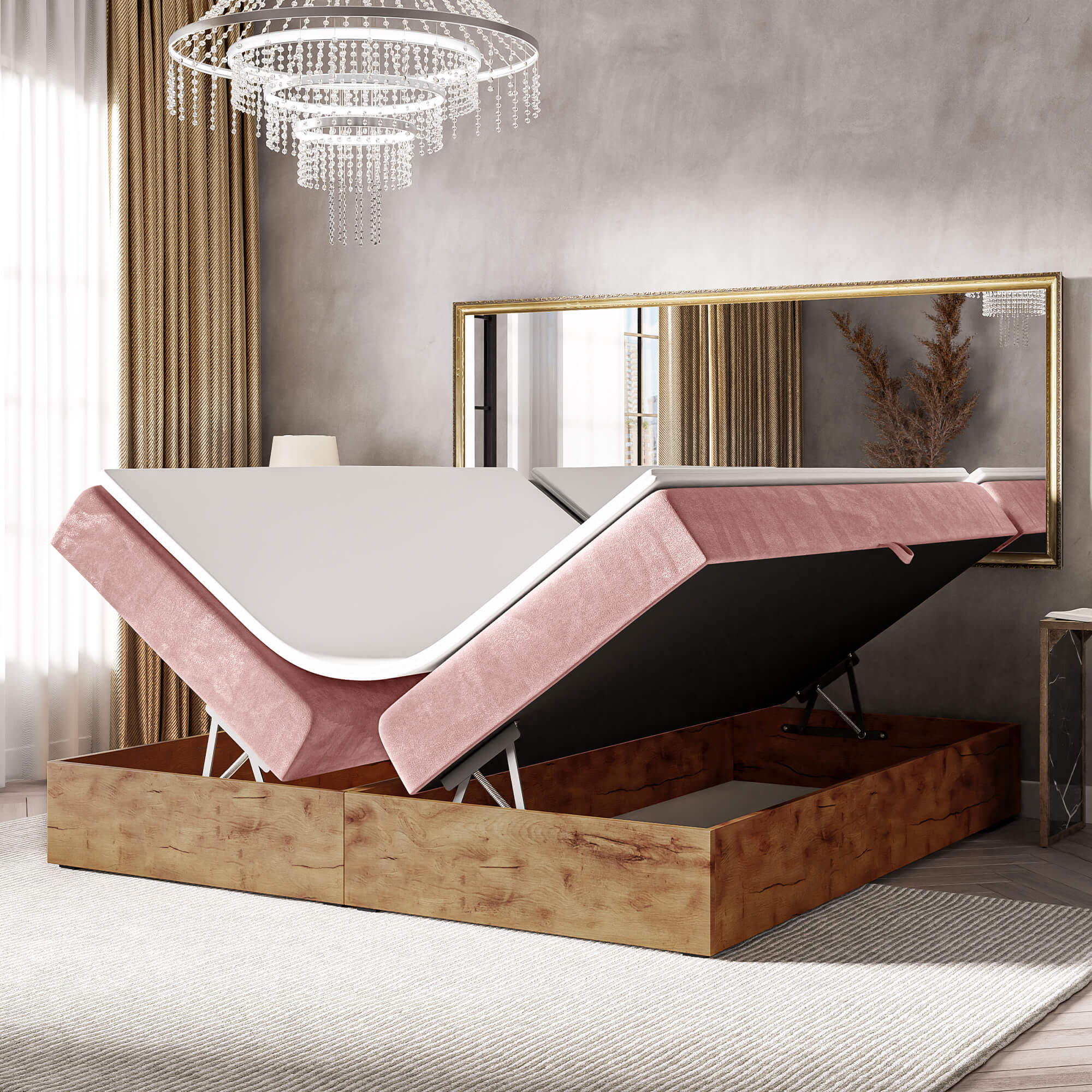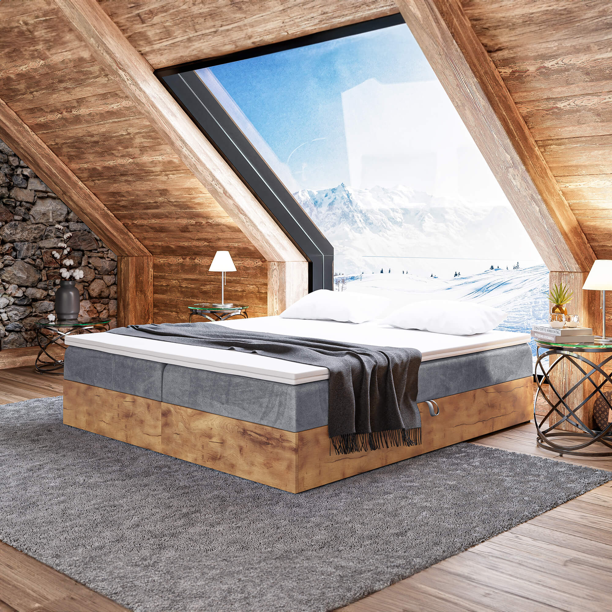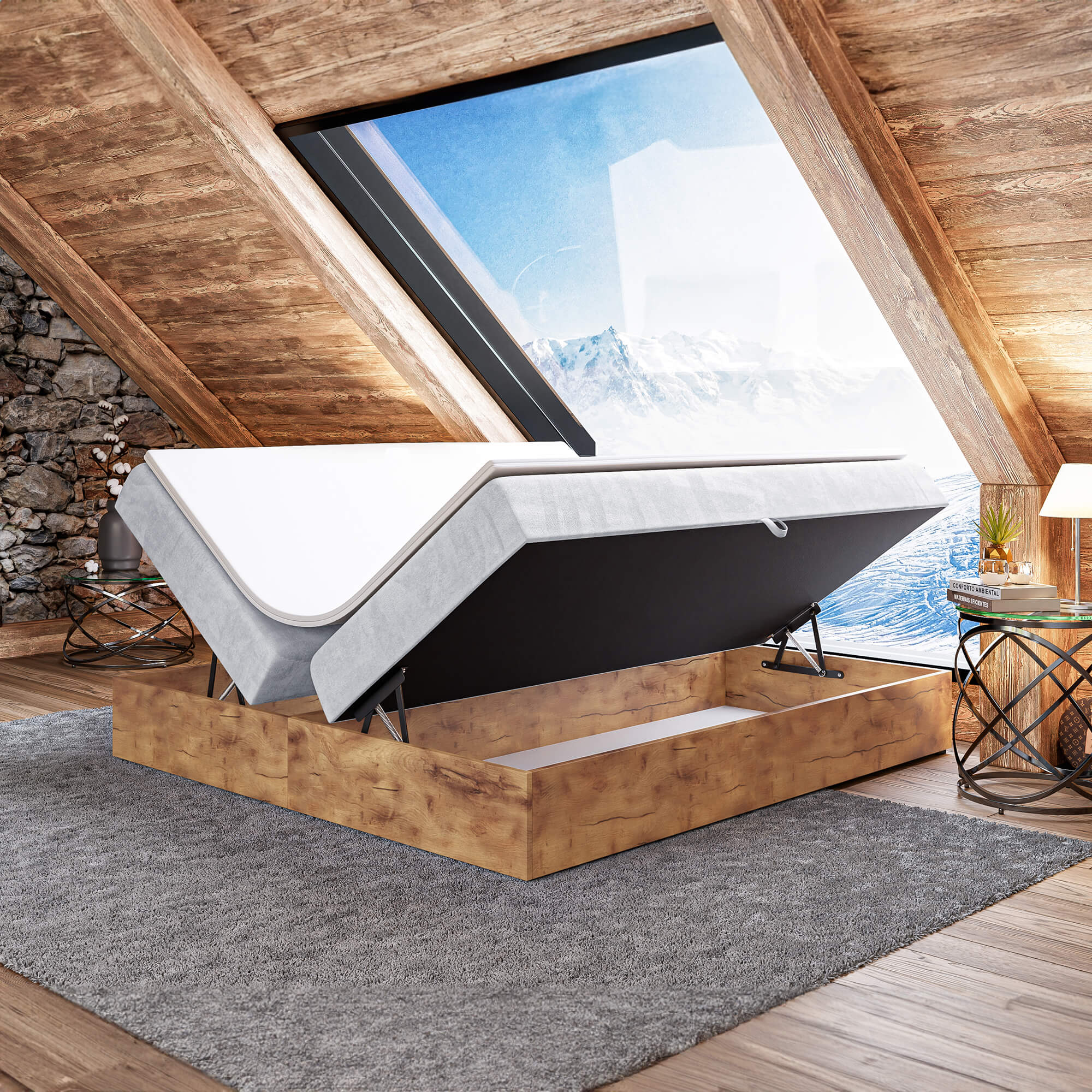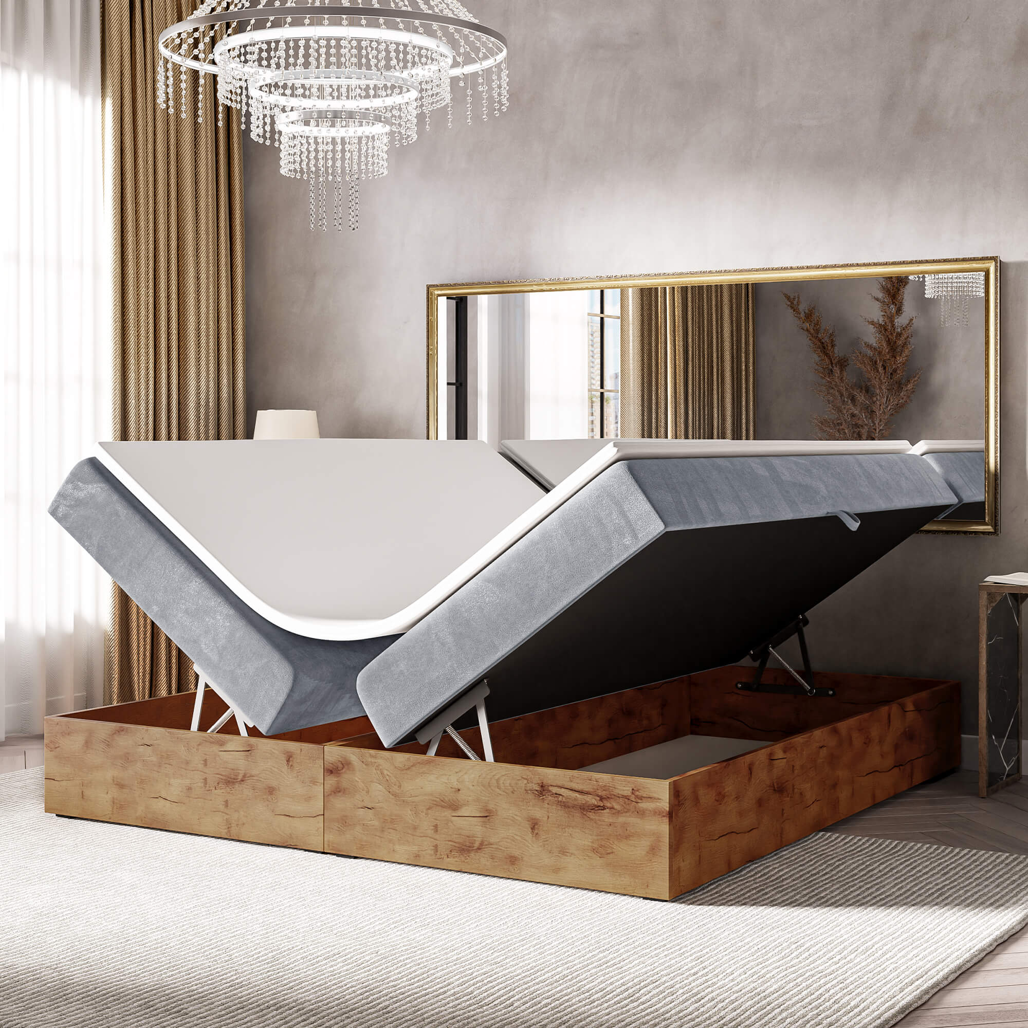 Łóżko kontynentalne ze skrzyniami WOODIN BOX 220 cm