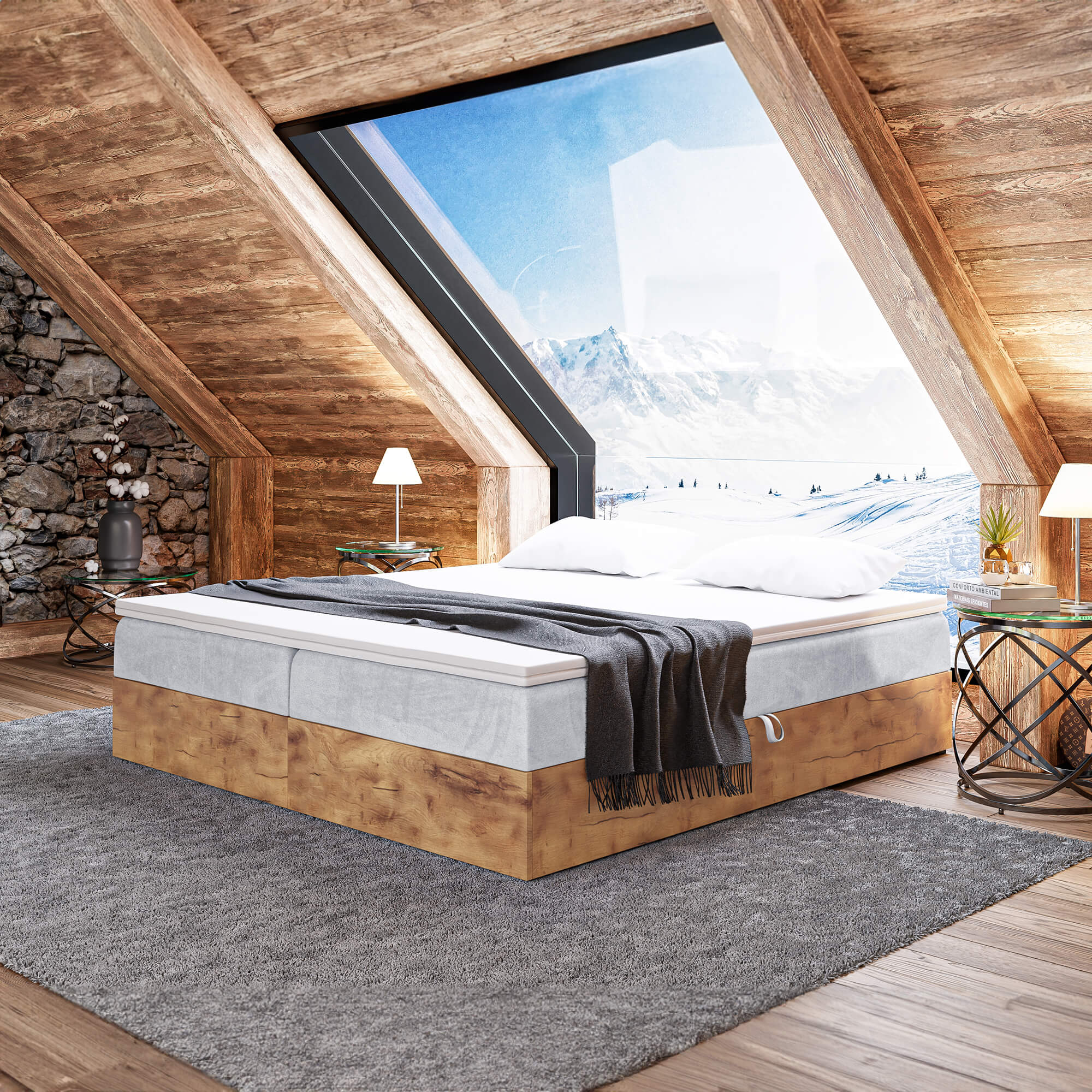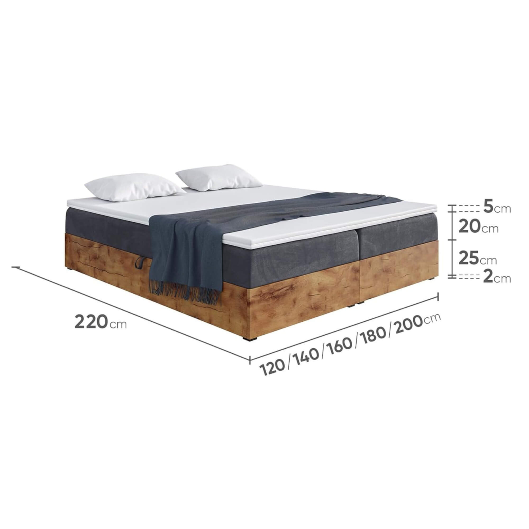 Łóżko kontynentalne bez zagłówka WOODIN BOX 220 cm