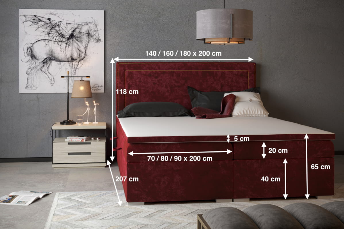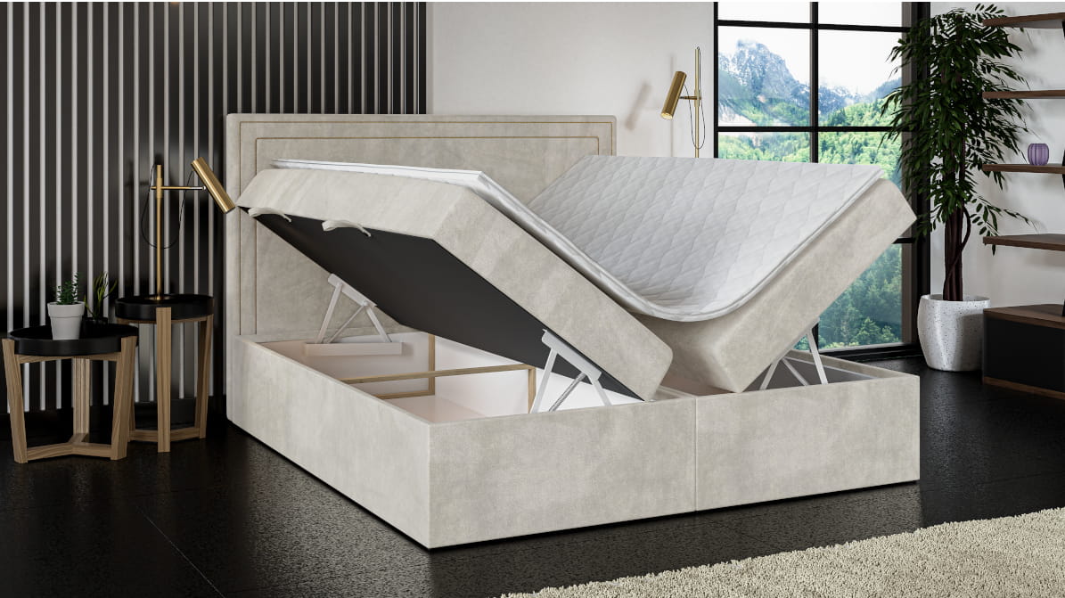 Egzemplarz z nazwą QUATRI odzwierciedla najnowsze trendy, stawiając na sprawdzone rozwiązania w przyjemnej dla oka oprawie wizualnej. Mamy zatem do czynienia ze skrzynią wypełnioną sprężynami zabezpieczonymi pianką. Materac bonellowy zastosowany w tym modelu zapewni odpowiednie oparcie ciała podczas snu. Materac wierzchni to tzw. topper zabezpieczy powierzchnię spania przed zabrudzeniami oraz pozwoli na lepsze dopasowanie twardości podłoża.