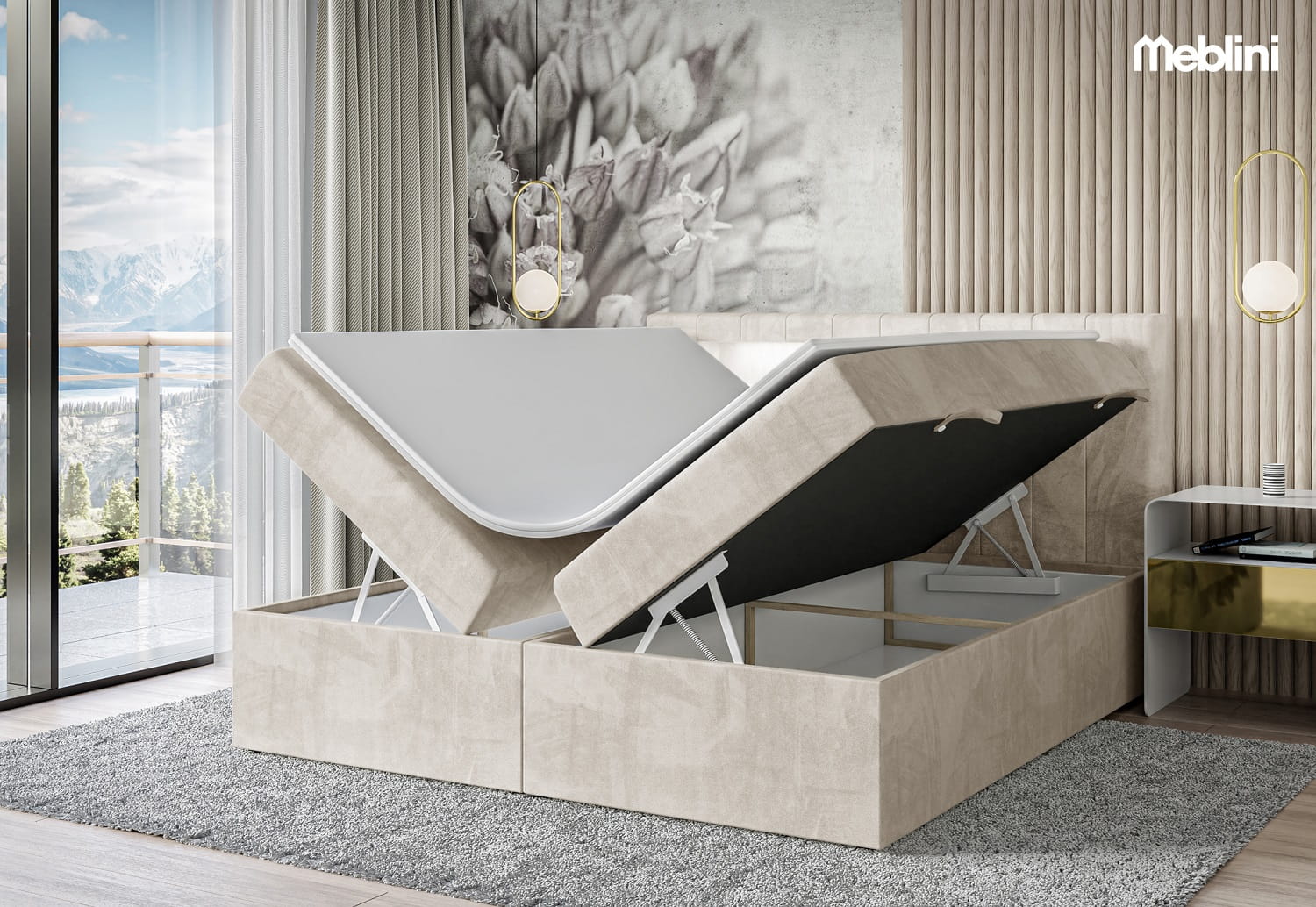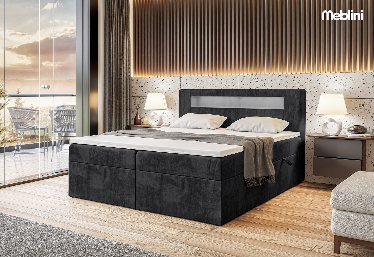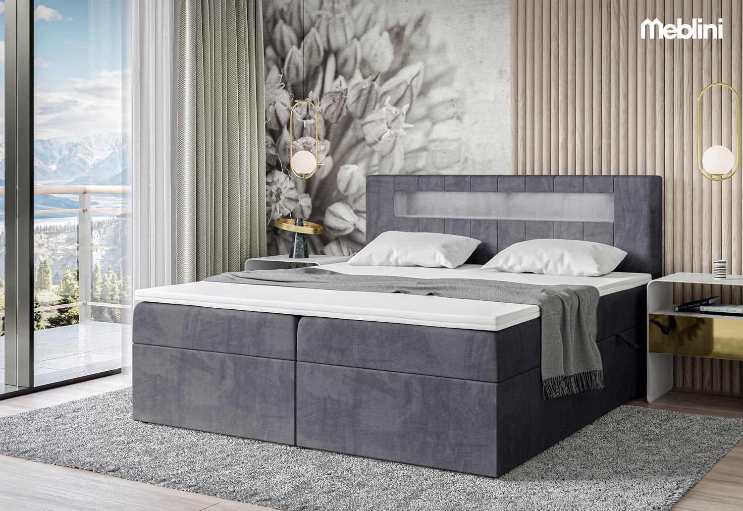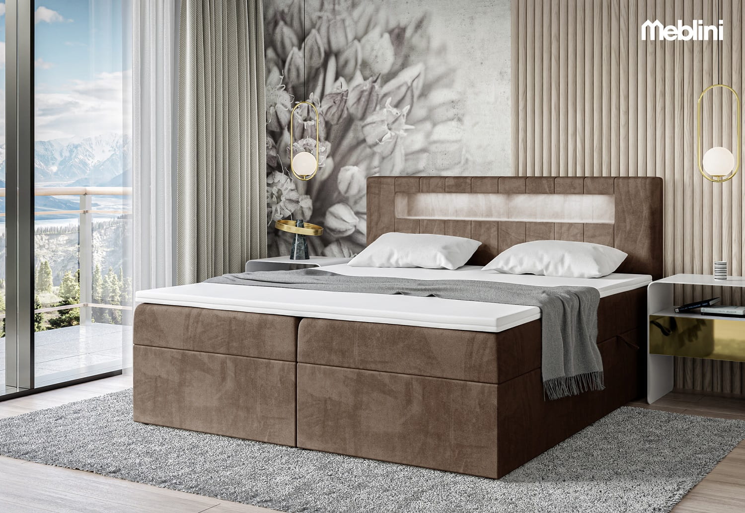 Łóżko kontynentalne do sypialni ASPIN z oświetleniem LED