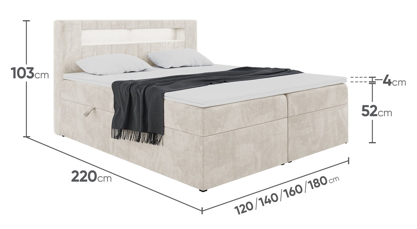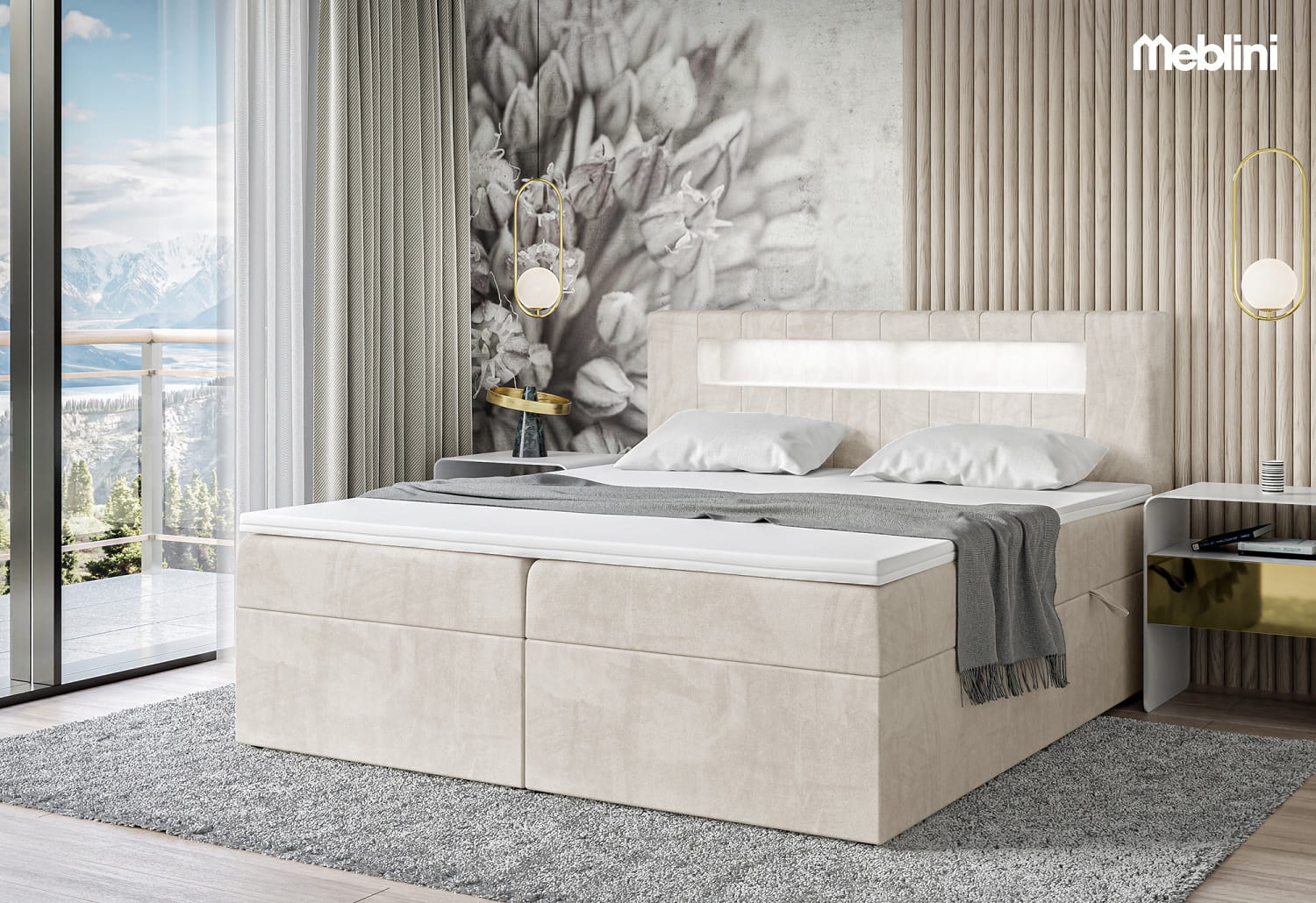 Łóżko kontynentalne z oświetleniem LED ASPIN