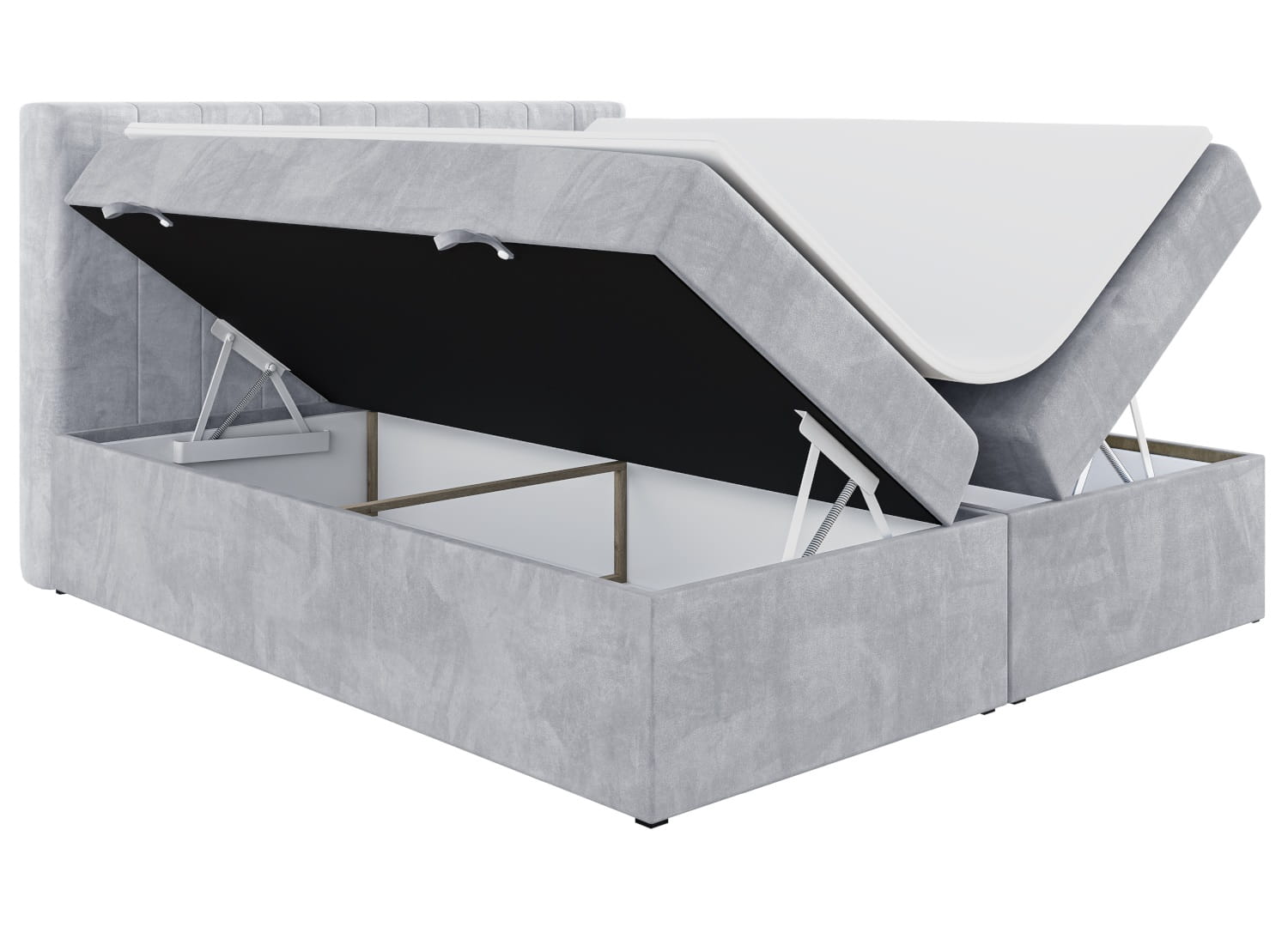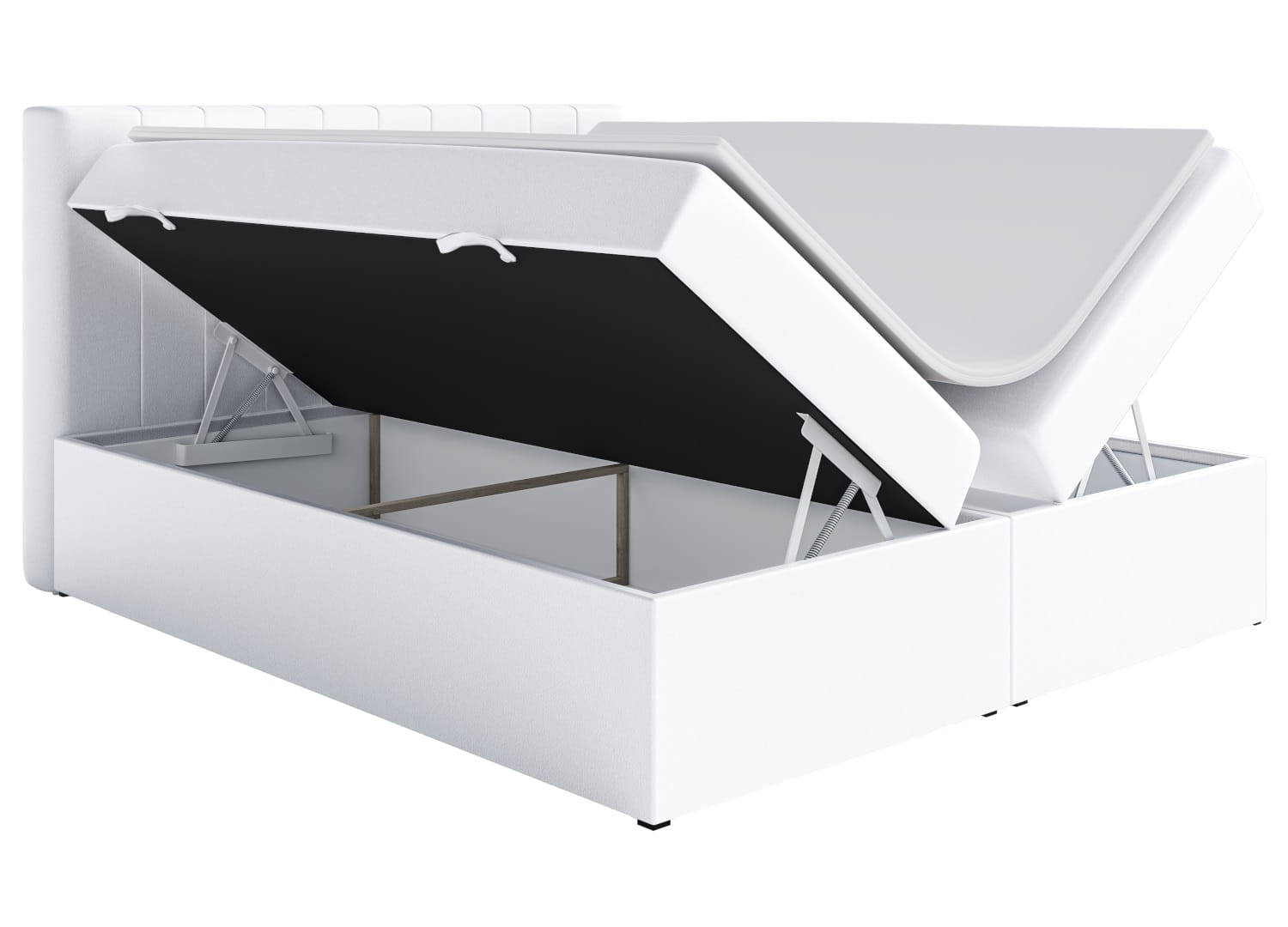 W wariantach produktu znajdziesz również możliwość wyboru odpowiedniego dla Twoich potrzeb materaca. Łóżko zostało wyposażone w dwa praktyczne pojemniki na pościel oraz czterocentymetrowy topper.