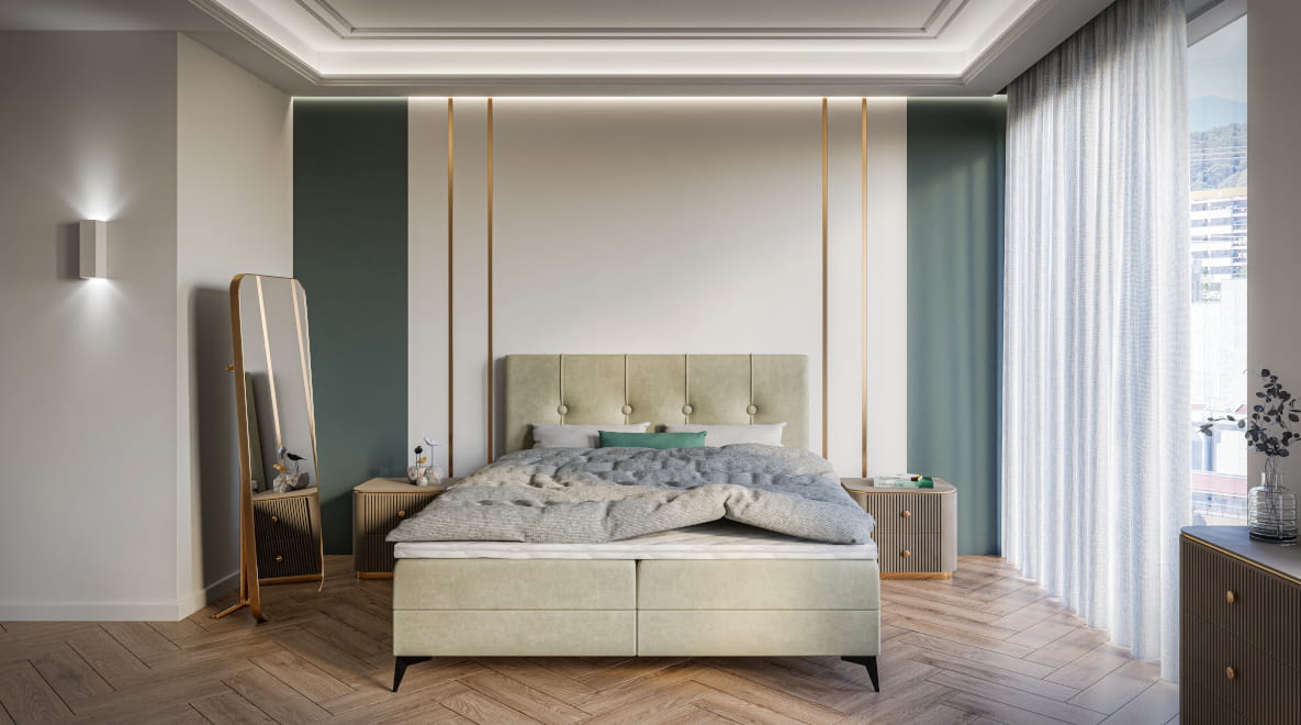 Sypialnia, Łóżka do sypialni, Łóżka tapicerowane, Łóżka kontynentalne, Materace