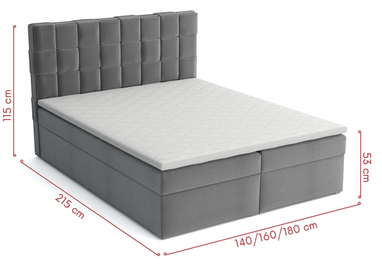 - rozmiar 180 x 180: Wysokość: 30 cm; Szerokość: 87 cm x 2 pojemniki; Długość 197 cm