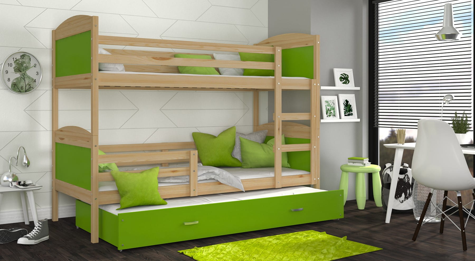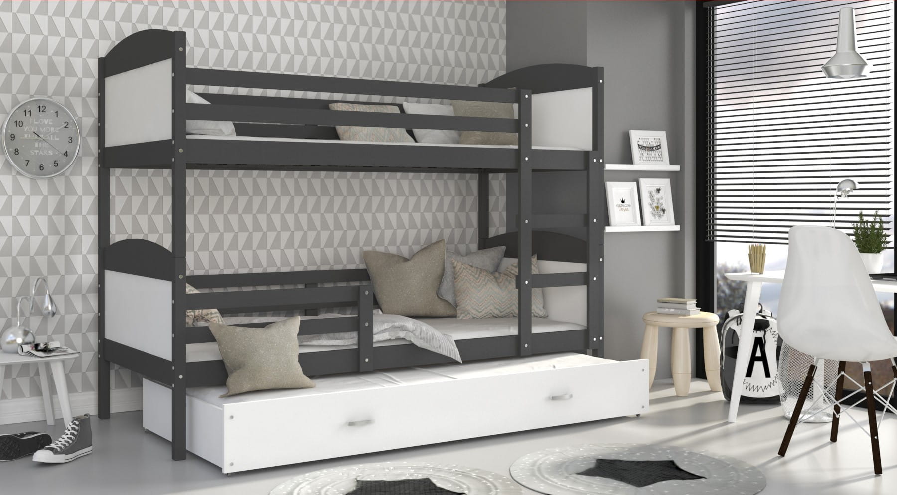 Łóżko piętrowe MATEO 3 190x80 trzyosobowe do pokoju dzięcięcego