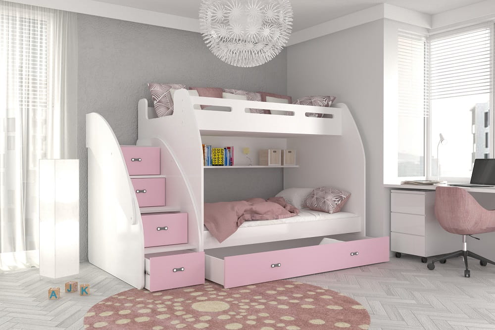 Łóżko piętrowe ZULA pięć szuflad z bezpiecznym wejściem