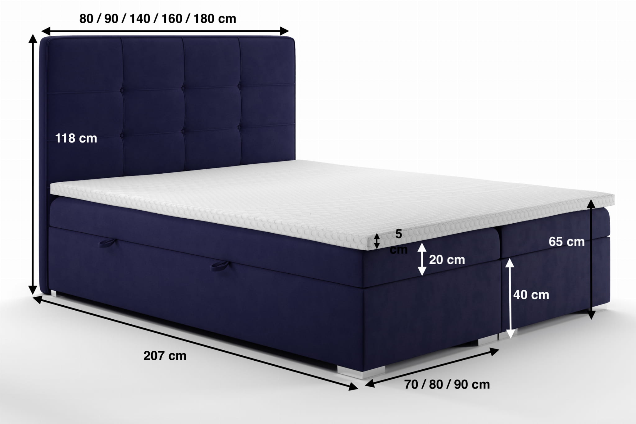 - szerokość: 80 cm / 90 cm / 120 cm / 140 cm / 160 cm / 180 cm / 200 cm