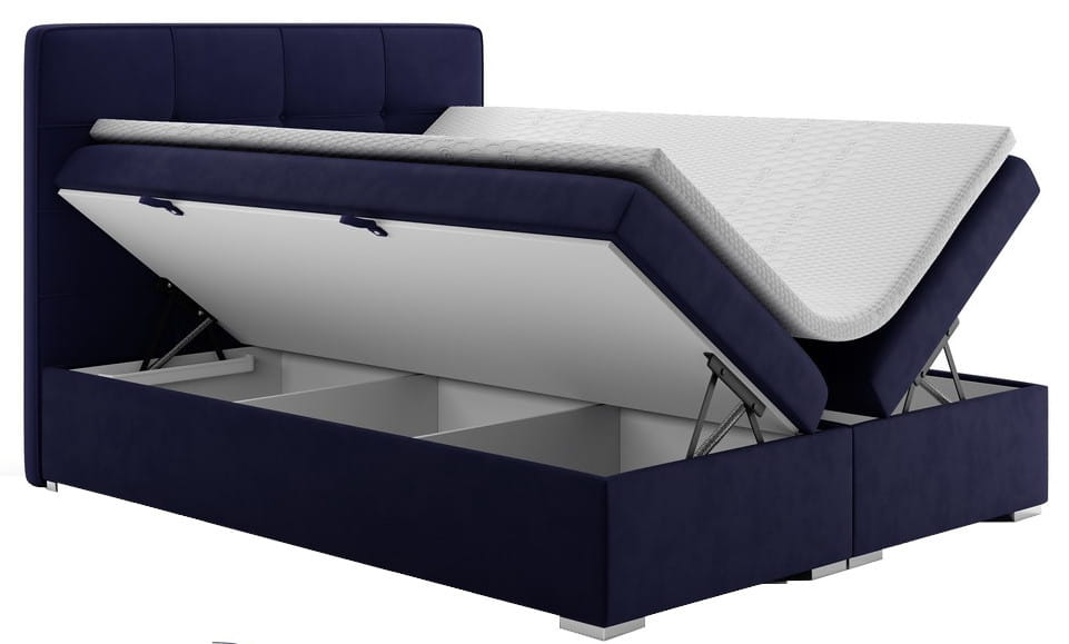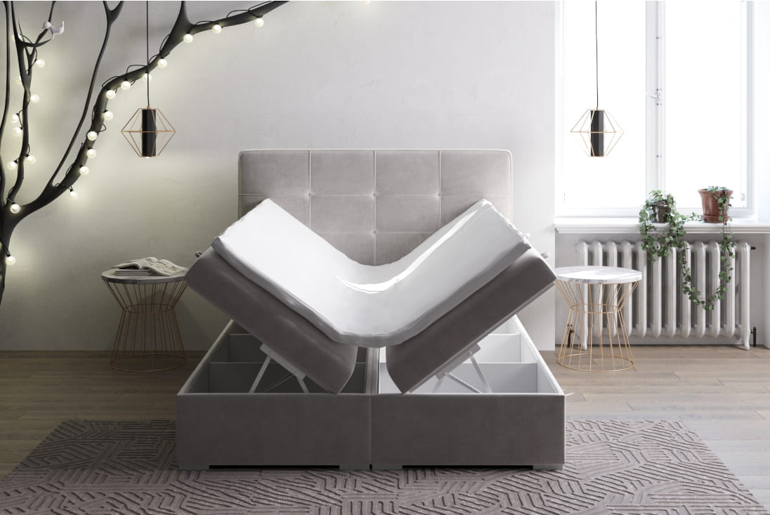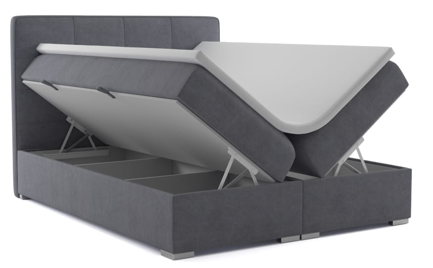 Model ten oferuje gruby materac bonellowy, ze sprężynami dopasowującymi się do ciężaru użytkowania. Wyposażono go w standardową i sprawdzoną piankę T-25. Warstwę wierzchnią stanowi miękki Topper, jakiego nie może zabraknąć w łóżkach tego typu. Łatwe przechowywanie niepotrzebnej pościeli umożliwią dwie skrzynie dzielone przegródkami. Egzemplarz w dwóch najmniejszych szerokościach oferuje jedynie jeden taki pojemnik i jest świetną propozycją do pokoju dziecka.