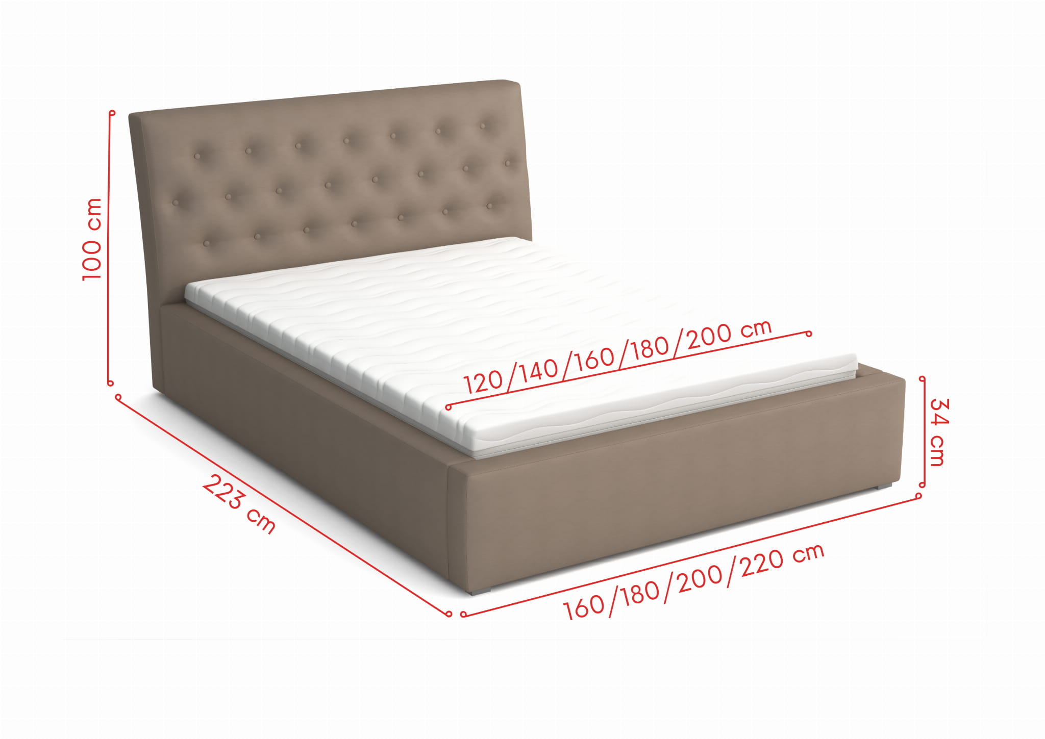Powierzchnia spania: 120 cm x 200 cm | 140 cm x 200 cm | 160 cm x 200 cm | 180 cm x 200 cm | 200 cm x 200 cm