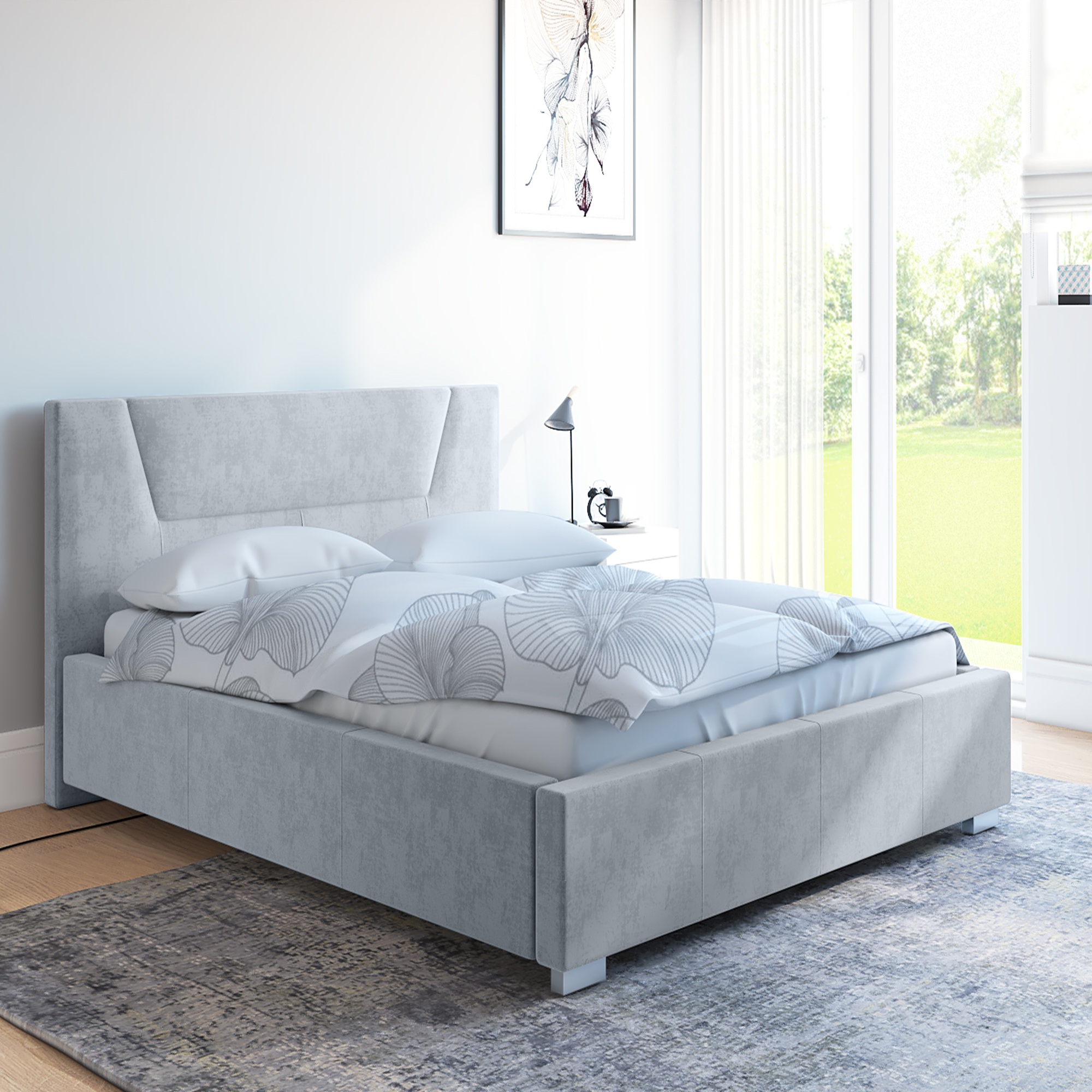 Nowoczesne łóżko tapicerowane RITA zachwyca prostą, elegancką formą i subtelnym wykończeniem. Miękka w dotyku tkanina nadaje lekkości i świeżości, doskonale wpisując się w minimalistyczne oraz skandynawskie aranżacje. Geometryczny zagłówek dodaje całości charakteru, jednocześnie pozostając niezwykle uniwersalnym.