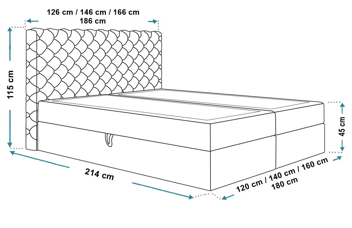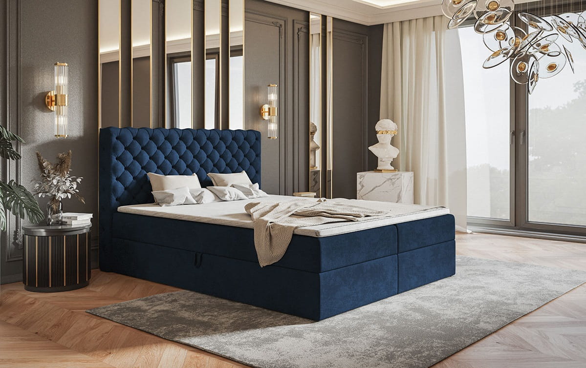 Łóżko do sypialni BOKS 8 wyposażono w bogato zdobiony zagłówek, który doskonale odnajdzie się we wnętrzach w stylu glamour, eleganckich i nowoczesnych sypialniach. Dzięki charakterystycznemu pikowaniu, samodzielnie staje się ozdobą sypialni.Wymiary: