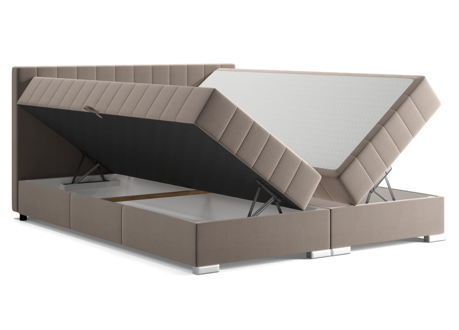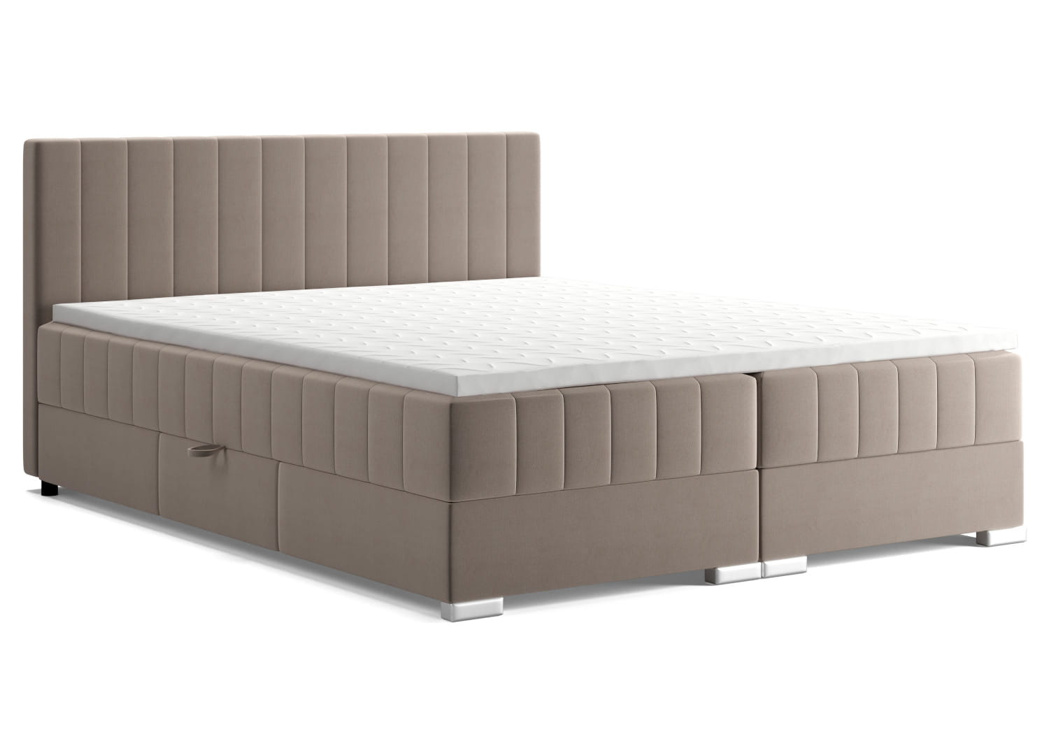 Łóżko typu boxspring ELIT charakteryzuje przede wszystkim zdobienie w formie pionowych przeszyć. Standardowym rozwiązaniem dla tapicerowanych łóżek jest zdobienie samego zagłówka, natomiast model ELIT przenosi przeszycia również na korpus, a dokładniej zewnętrze wbudowanych materacy. Dzięki takiemu zabiegowi mebel nabiera bardziej nowoczesnego charakteru.Wymiary: