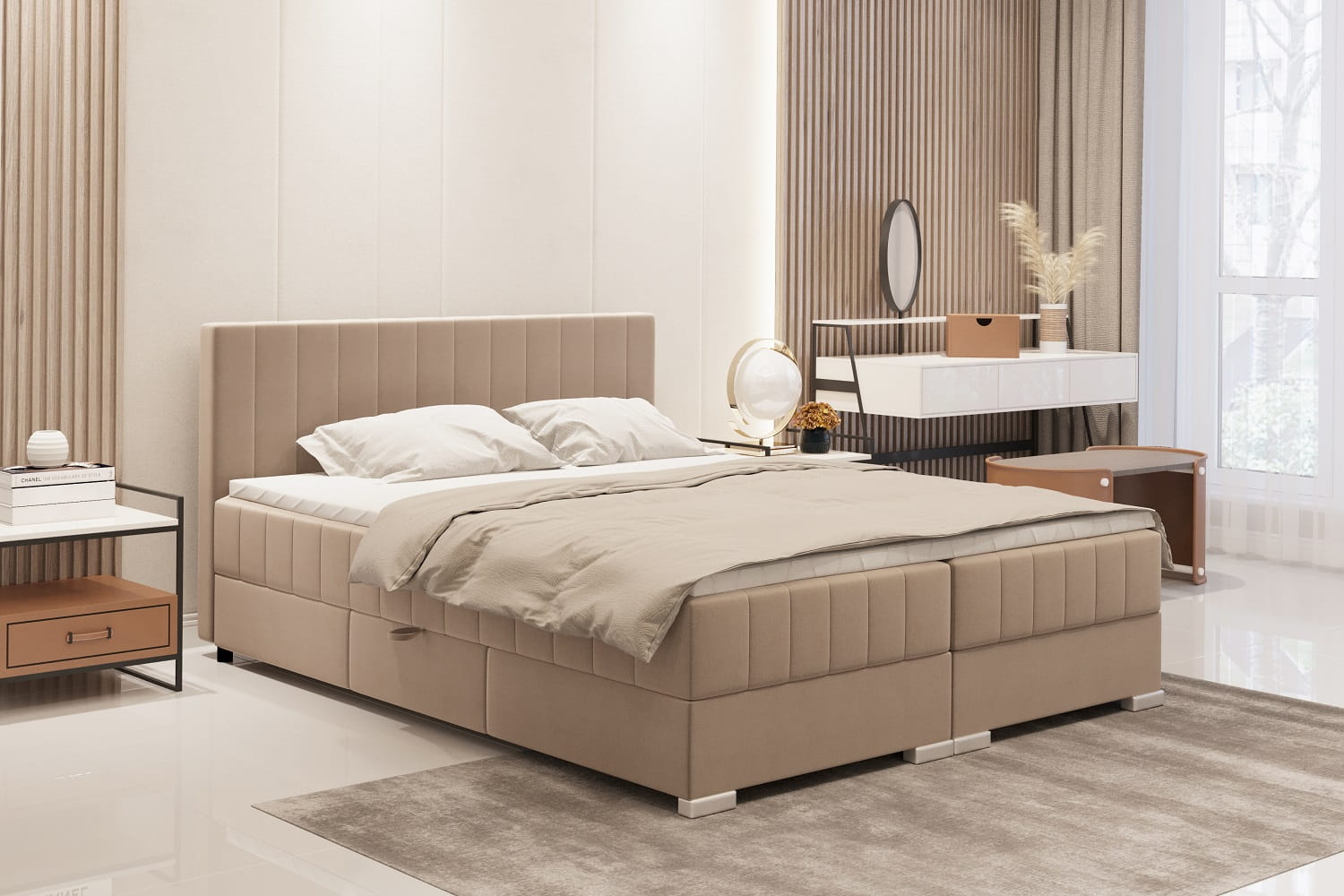 Łóżko tapicerowane kontynentalne ELIT do sypialni z pojemnikiem