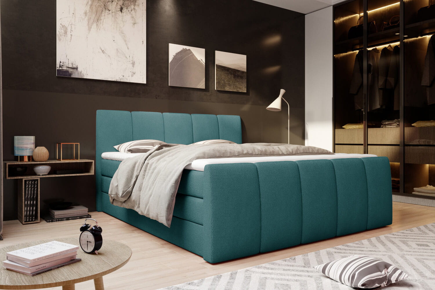 Boxspring FRESCO to niezwykle stylowe, wygodne oraz eleganckie łóżko sypialniane, które zapewnia jego użytkownikowi w pełni komfortowy wypoczynek. Niepodważalnym atutem łóżka jest fakt, iż łóżko jest w 100% kompletne i nie wymaga inwestowania w jakiekolwiek dodatkowe elementy. Ponadto został wykonany przy użyciu najnowszych technologii oraz najwyższej jakości materiałów.