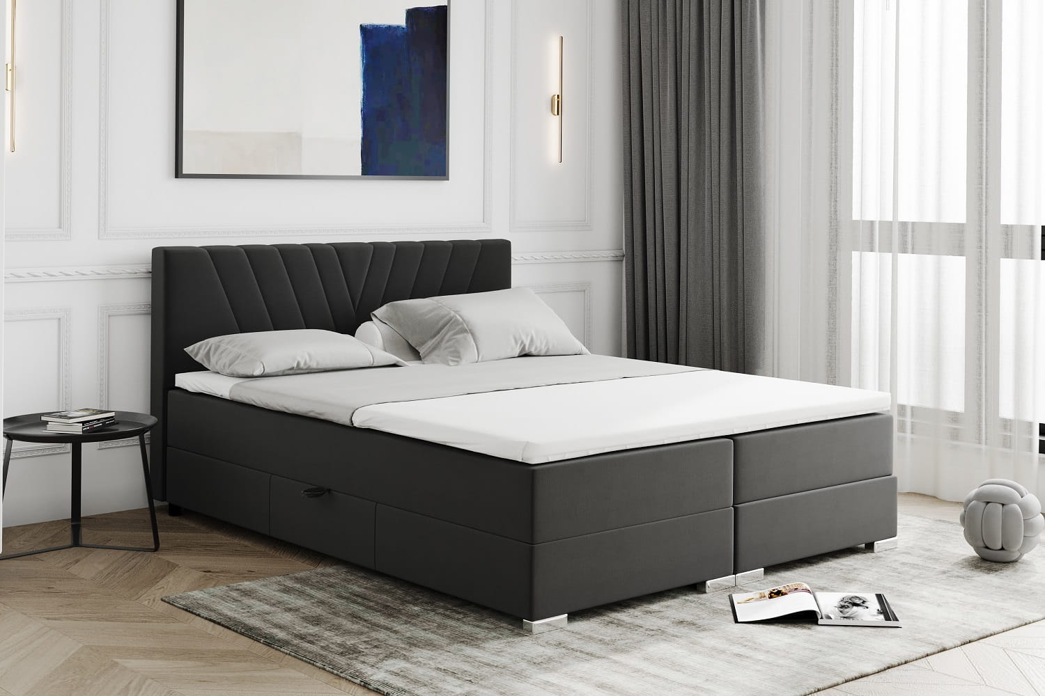 Łóżko typu boxspring z pojemnikiem ERNA zagłówkiem