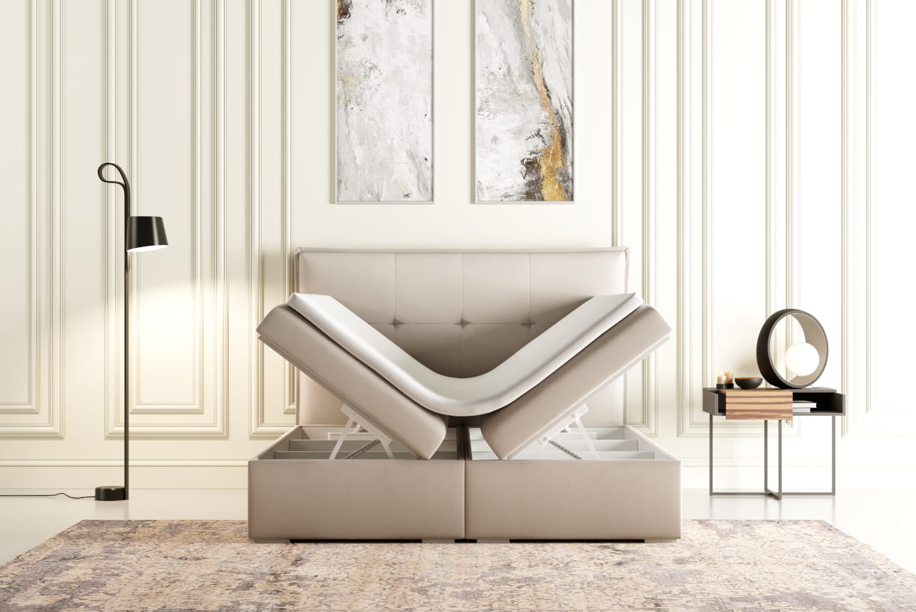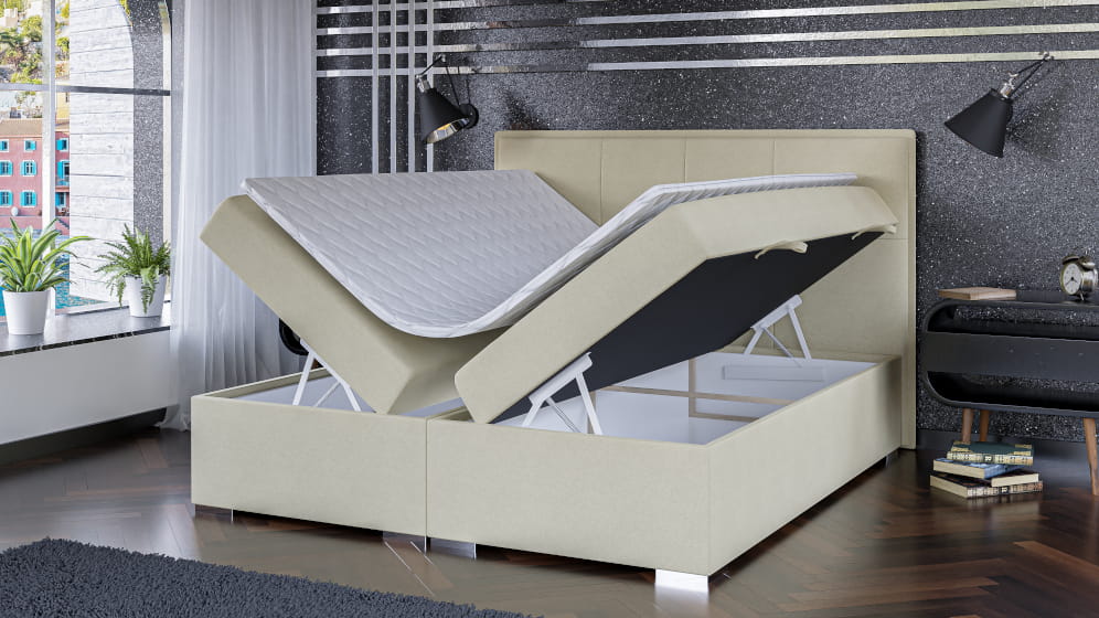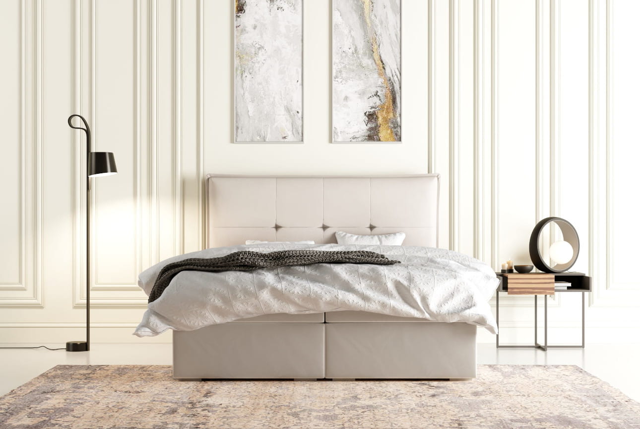 Łóżko typu boxspring z tapicerowanym zagłówkiem KERI