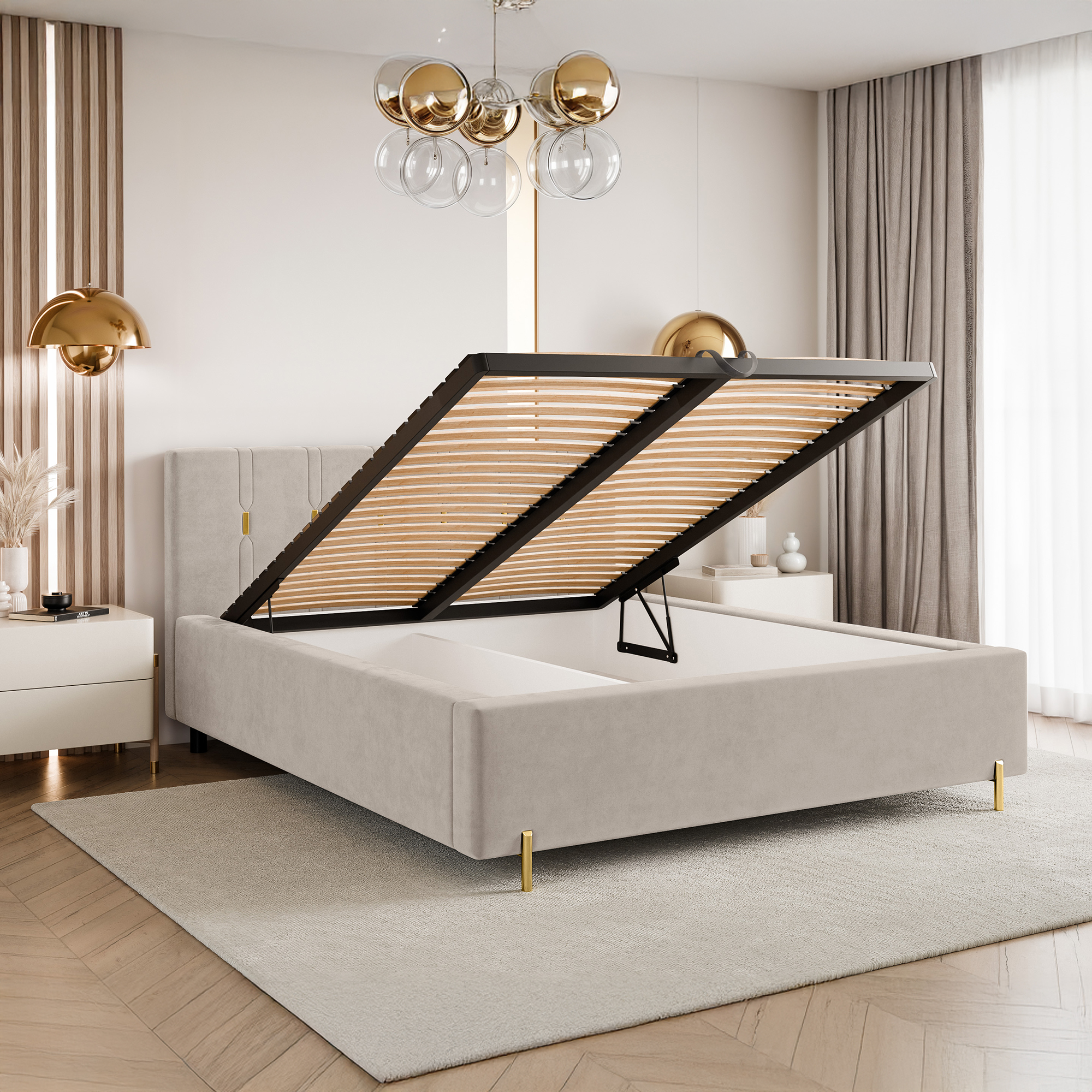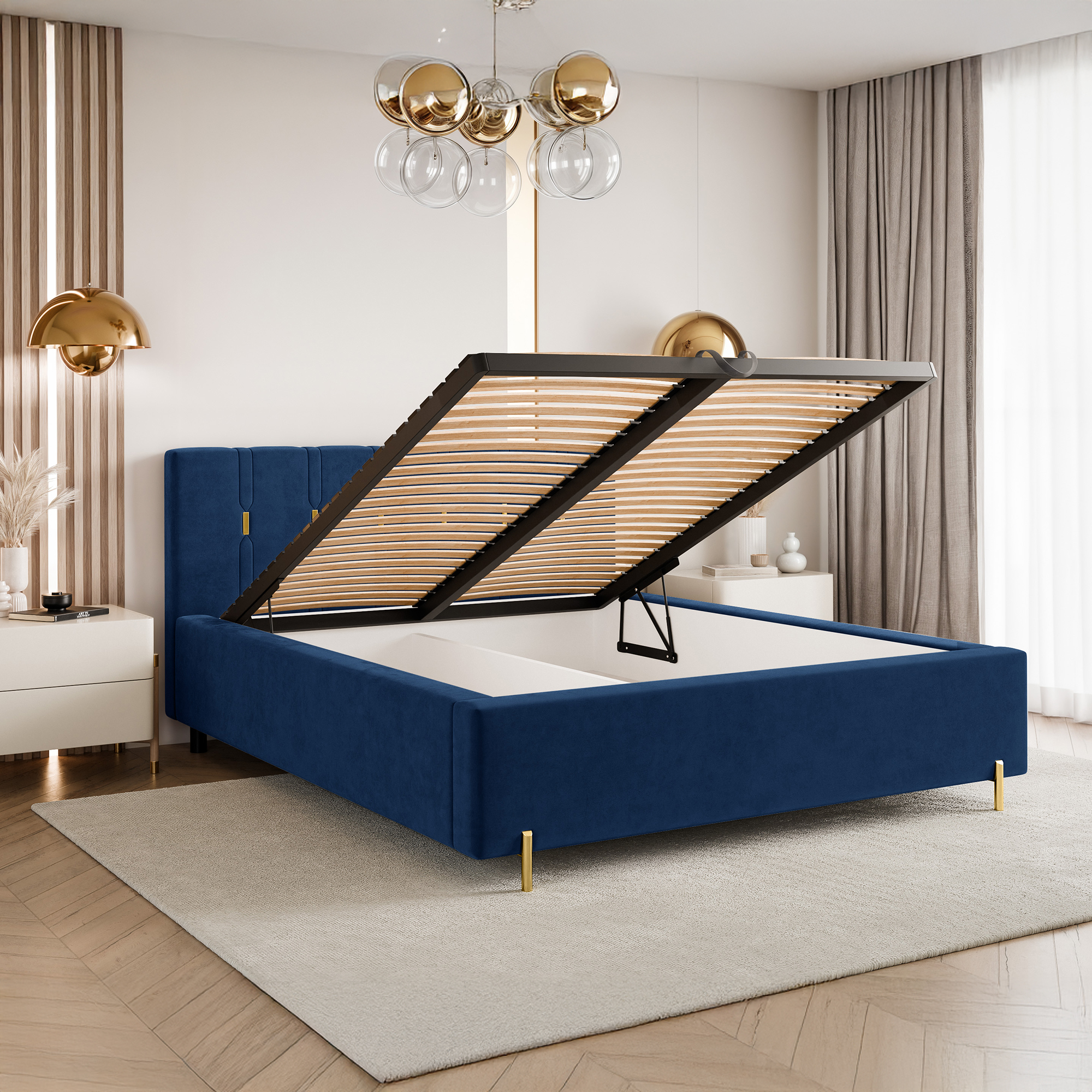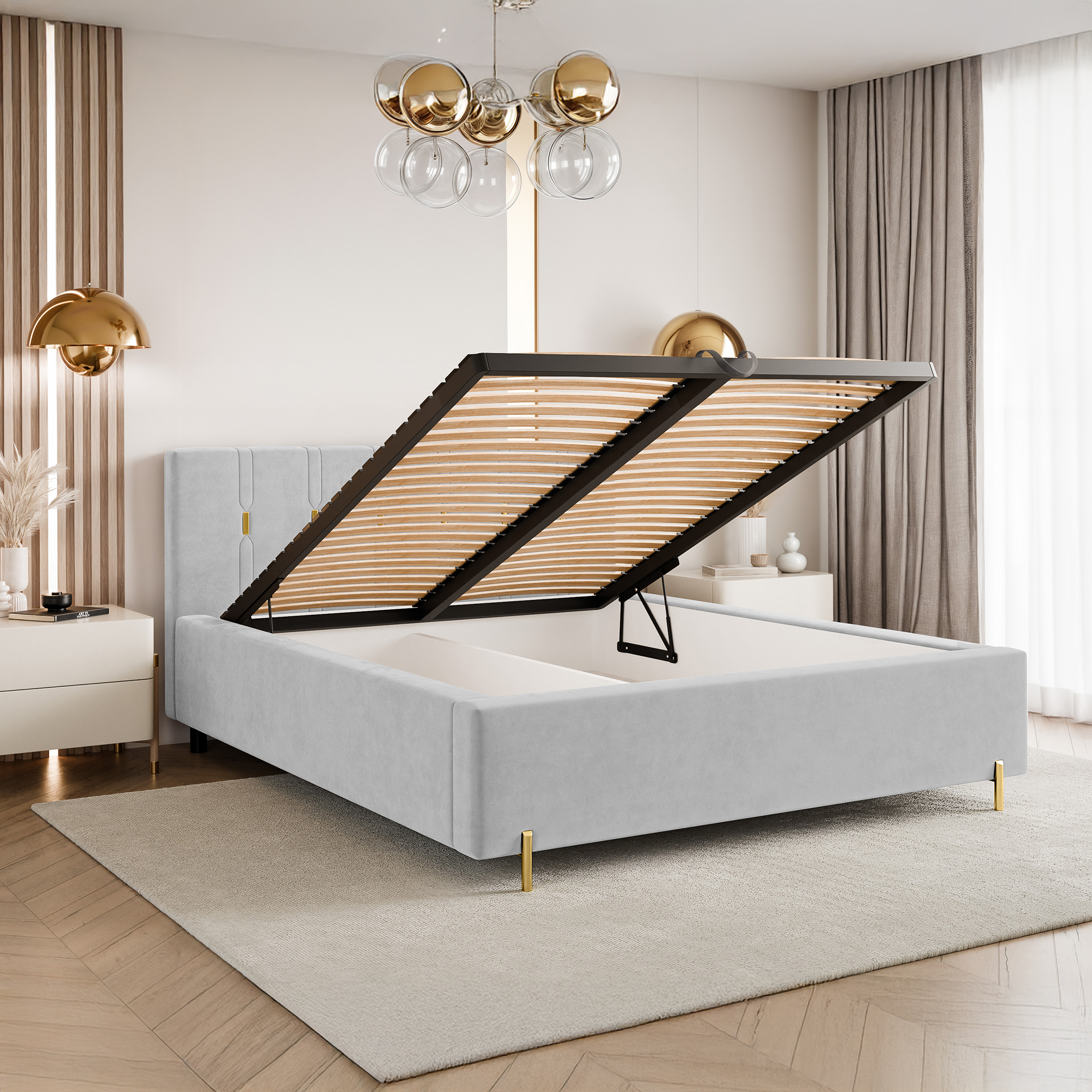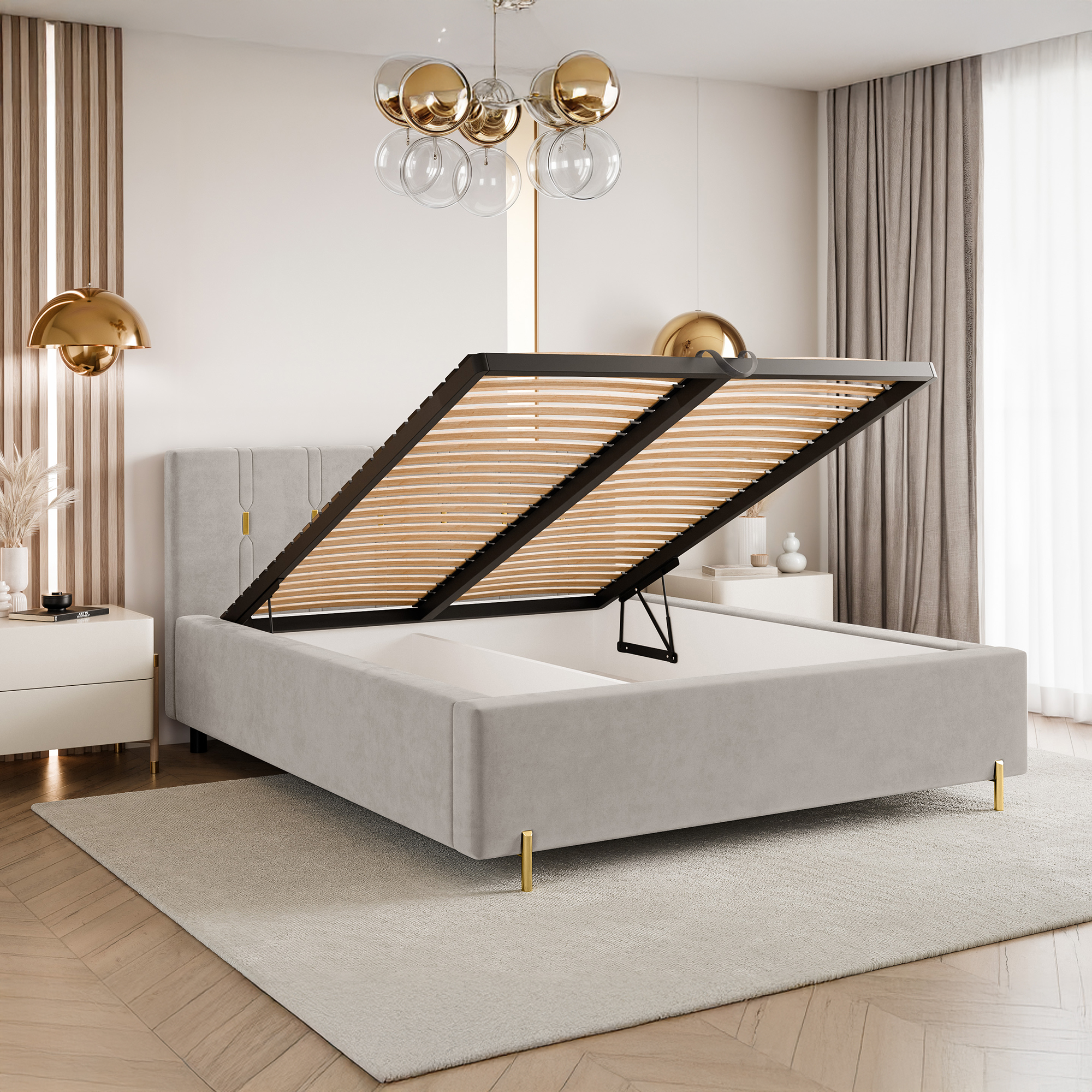 To łóżko świetnie sprawdzi się jako centralny punkt sypialni, wprowadzając do niej nutę nowoczesnego glamour. Połączenie funkcjonalności, wygody i dopracowanych detali sprawia, że jest to idealna propozycja dla osób poszukujących stylowych i ponadczasowych rozwiązań.