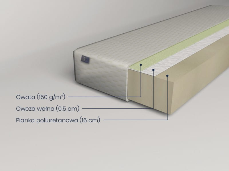 - Siatka wentylująca - zapewnia odpowiednią cyrkulację powietrza wewnątrz materaca.