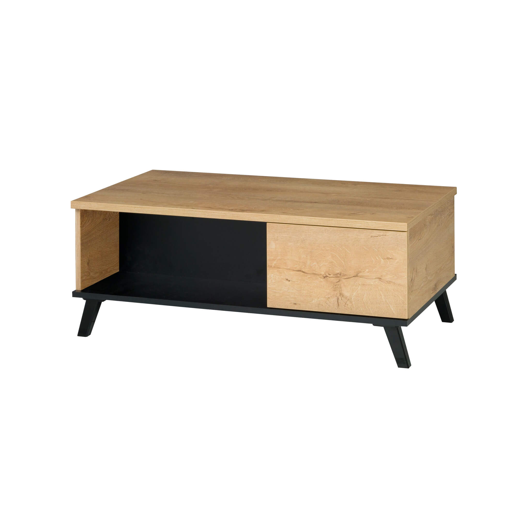 Meblościanka JON III to kolekcja wykreowana z myślą o nowoczesnym wzornictwie. Składa się z elementów wybawionych na kolor naturalnego drewna, doprawionego czarnymi detalami w postaci uchwytów i nóżek, na których zostały osadzone masywne bryły. Reprezentacyjny wygląd systemu będzie świetnym pomysłem na urządzenie pokoju dziennego, będącego głównym miejscem wszelkiego typu spotkań towarzyskich bądź wypoczynku. Nowoczesny i stylowy salon z systemem JON III jest na wyciągnięcie ręki!